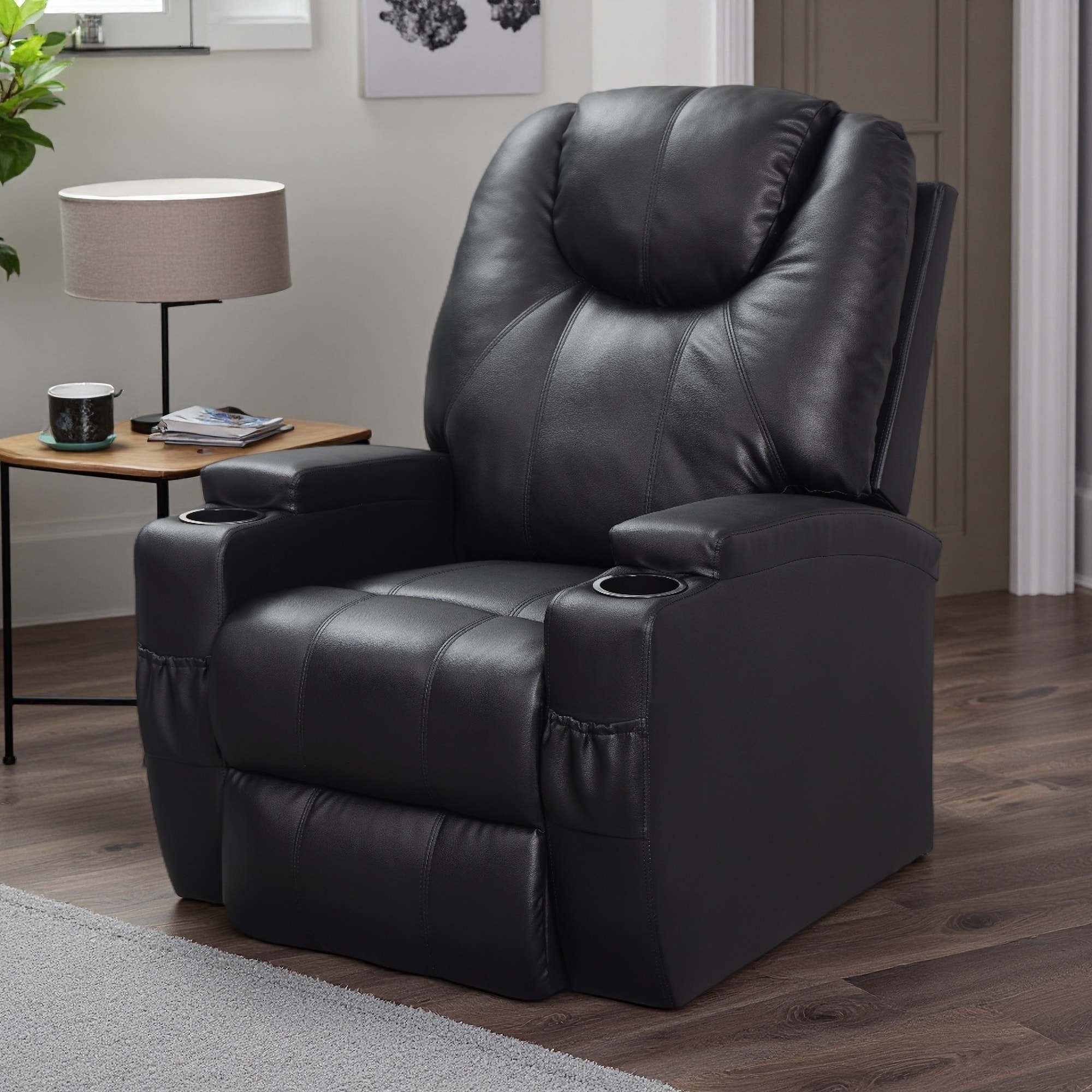 Faux Leather Recliner Chair with Cup Holders & Remote Control