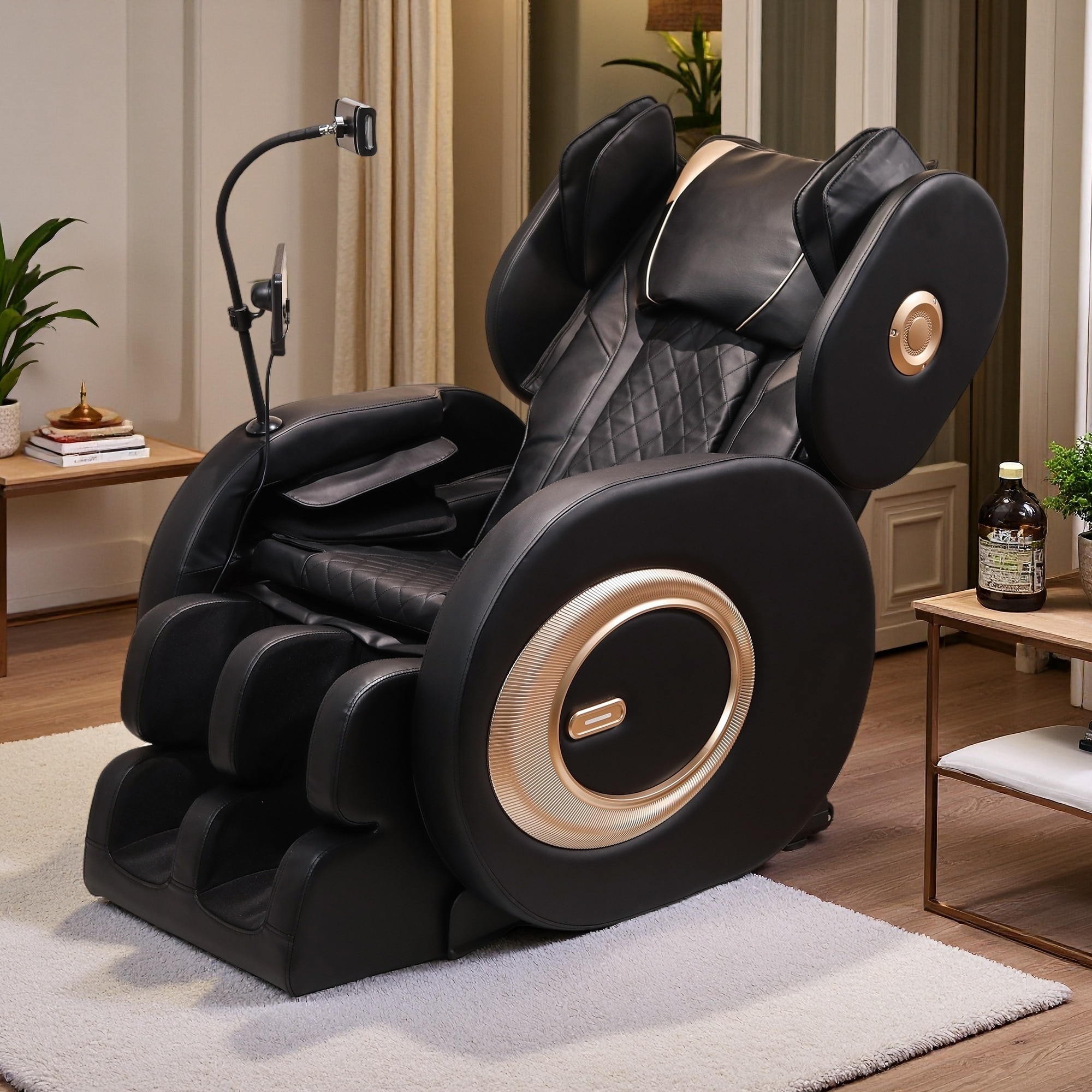 Modern Breathing Leather Recliner Chair with Ambient Lighting and USB-Powered LED