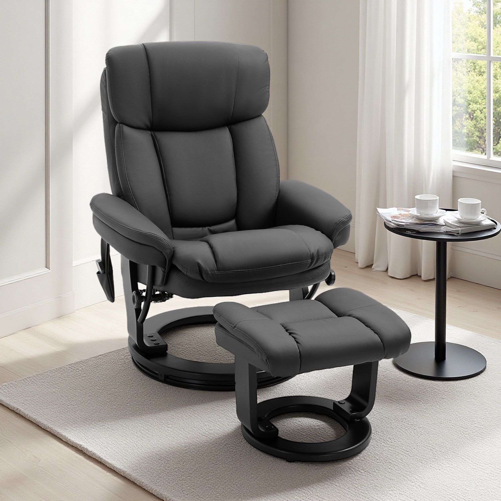PU Leather Massage Recliner Chair with Ottoman, 10-Point Vibration, Remote & Swivel Wood Base