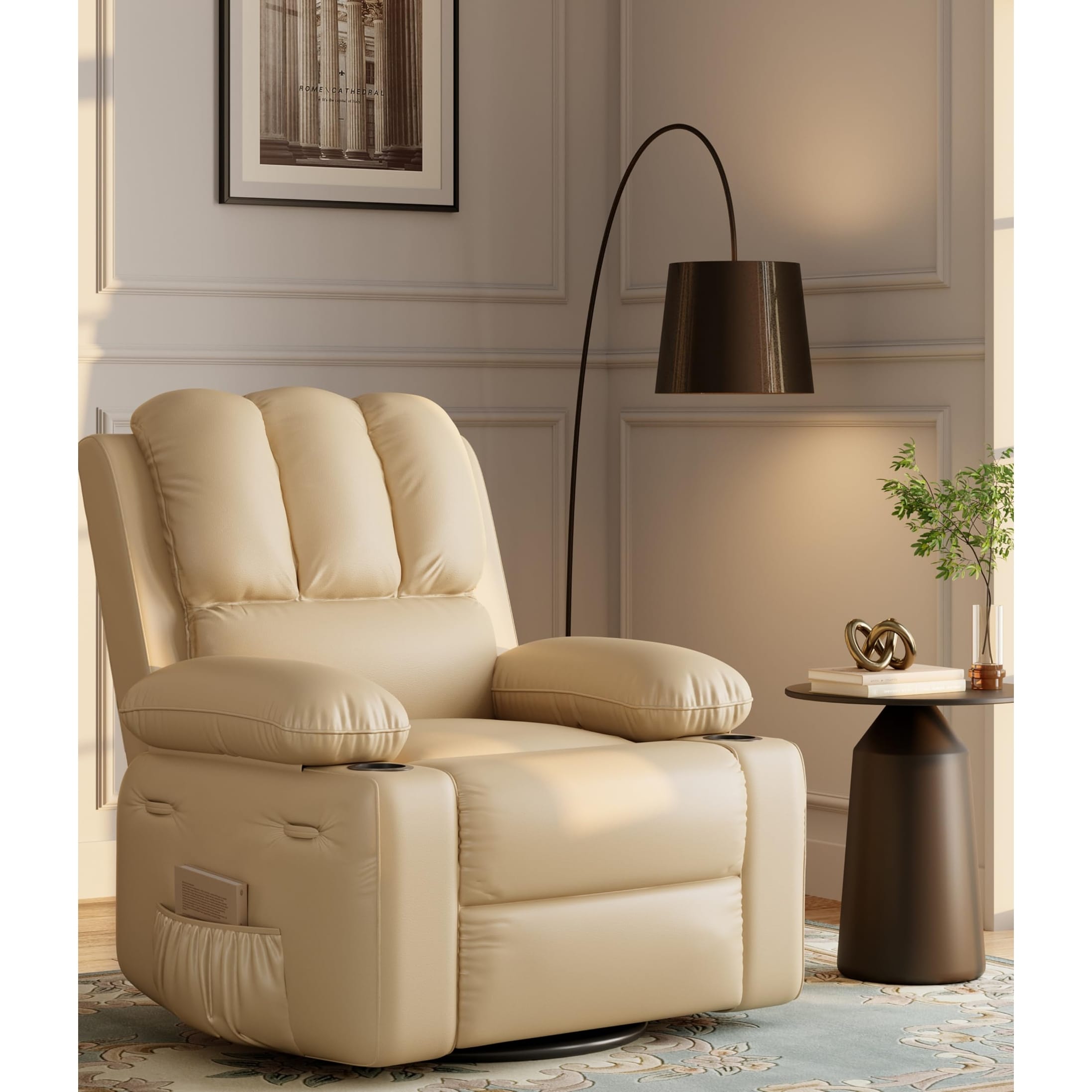 Oversized Manual Reclining Rocking Chair, 360 Swivel Glider with Cup Holder