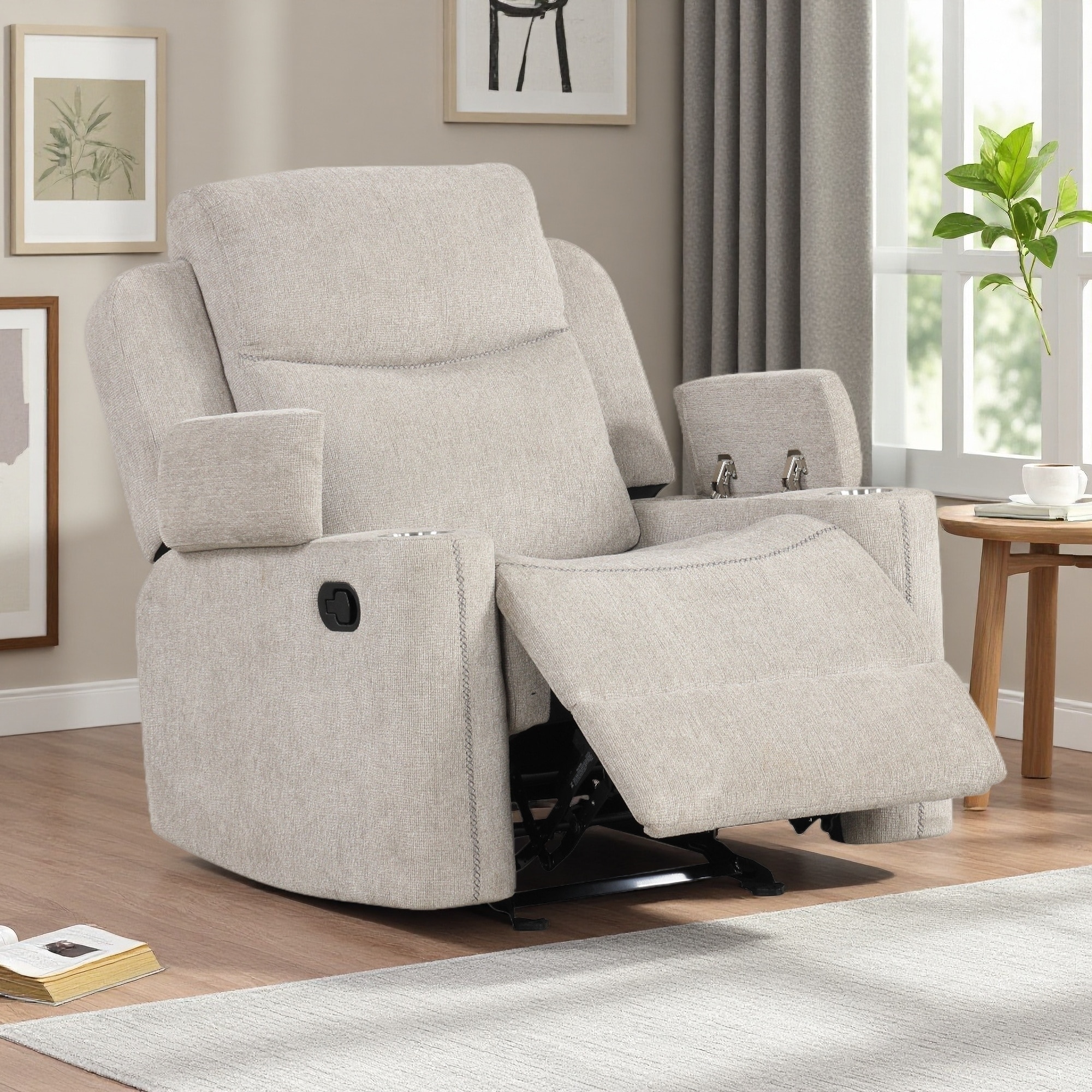 Chenille Motion Glider Recliner, Plush Pocket Coil Seat with Storage Arm