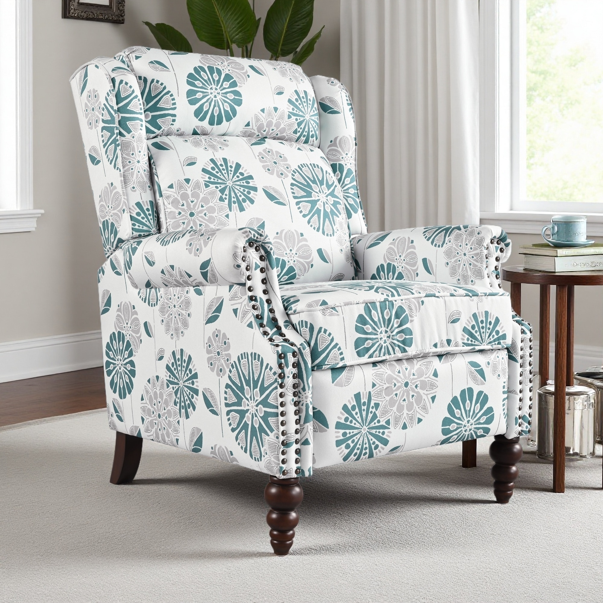 Chenille Push-Back Recliner Chair with Wingback & Wooden Legs