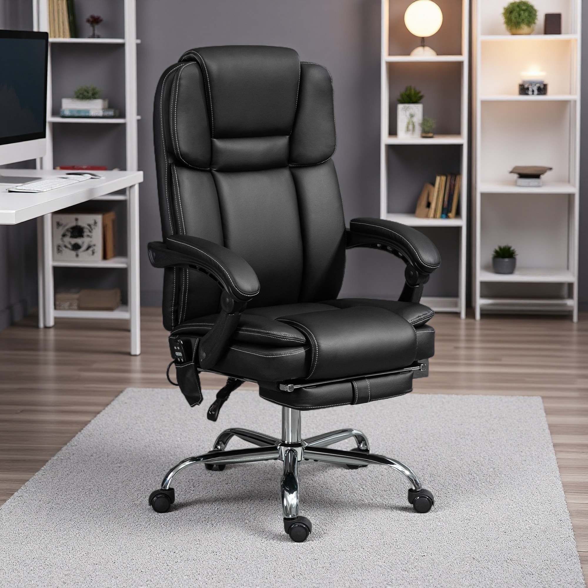 Faux Leather Reclining Swivel Massage Office Chair with Footrest & Heat