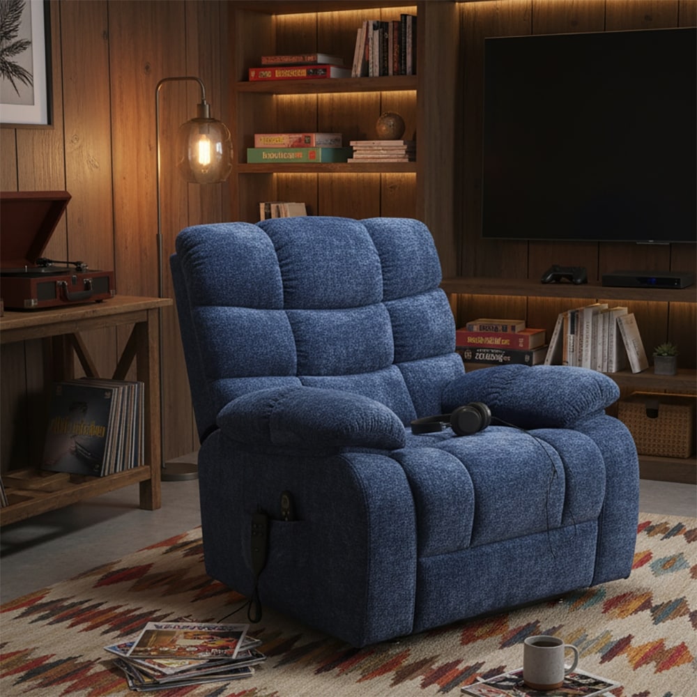 Classic Power Chenille Lift Recliner with Storage Pocket, Massage and Lumbar Heating Function