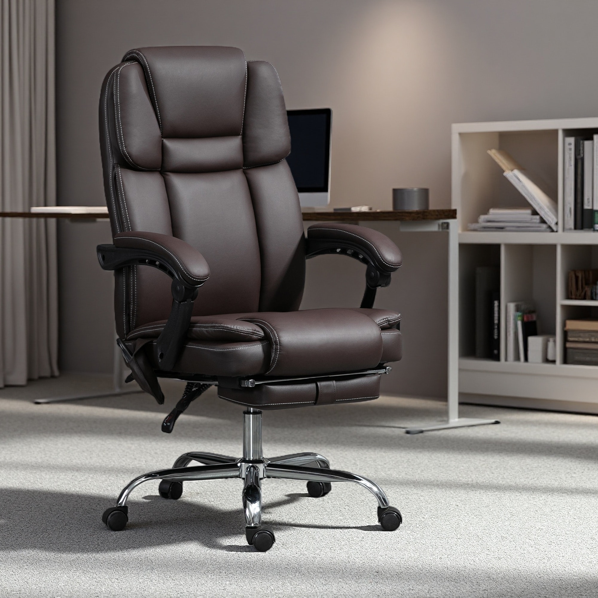 Faux Leather Reclining Swivel Massage Office Chair with Footrest & Heat