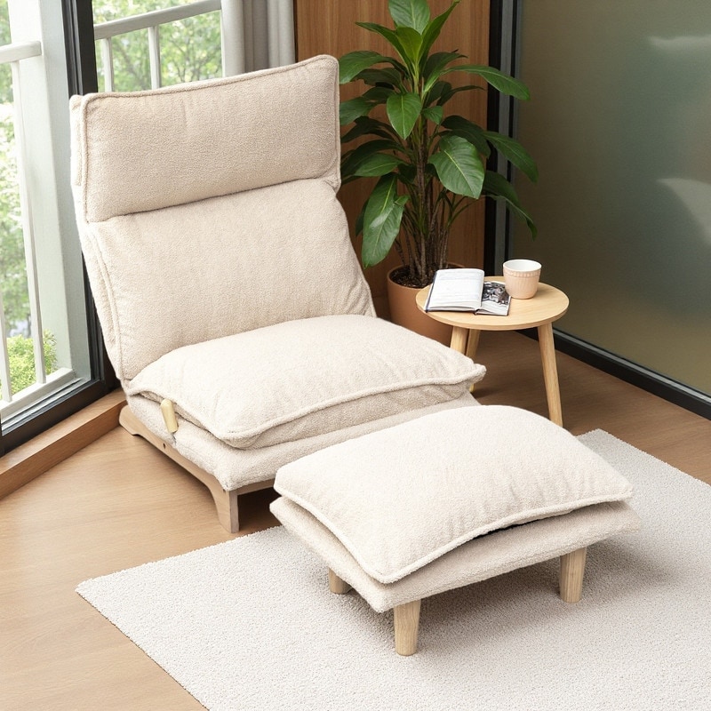 Fabric Reclining Lazy Sofa Chair with Foldable Design & Ergonomic Backrest