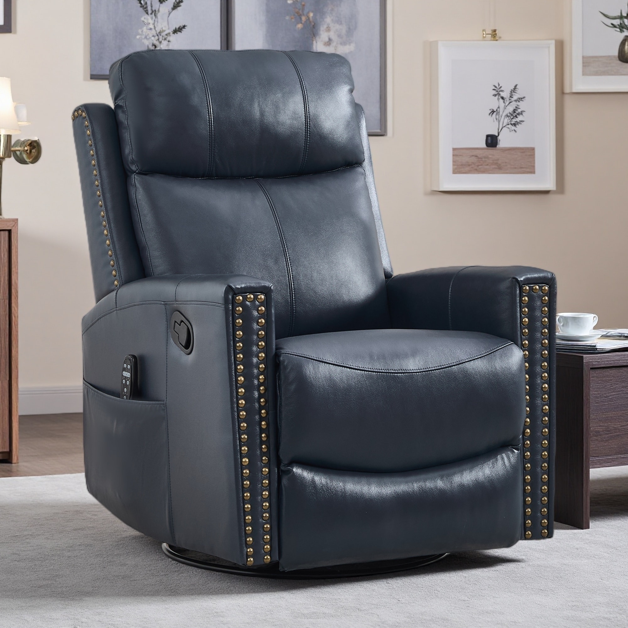 34" Wide Oversize Swivel Recliner Chair with Massage and Heat, Munual Recliner Rocker with Cup Holders