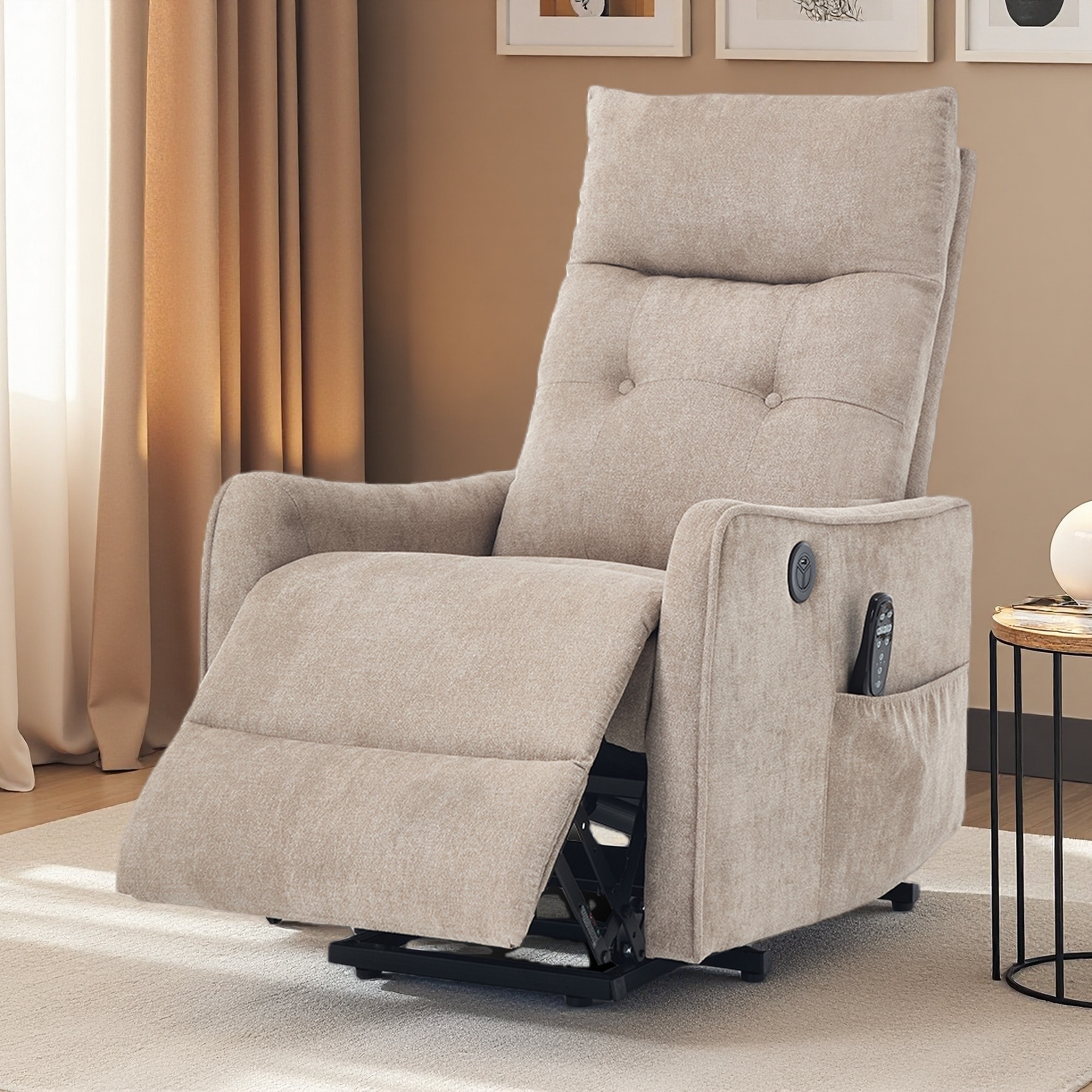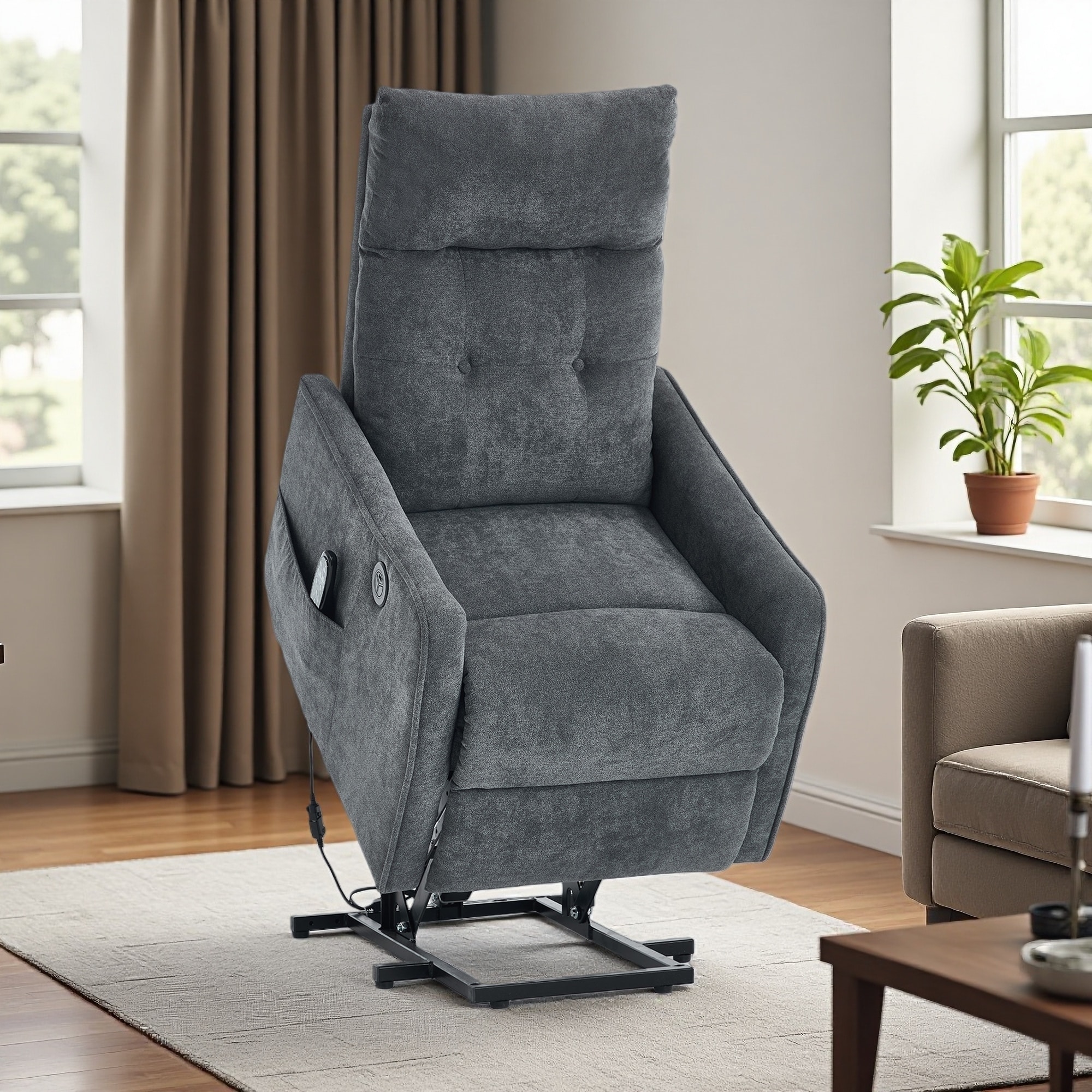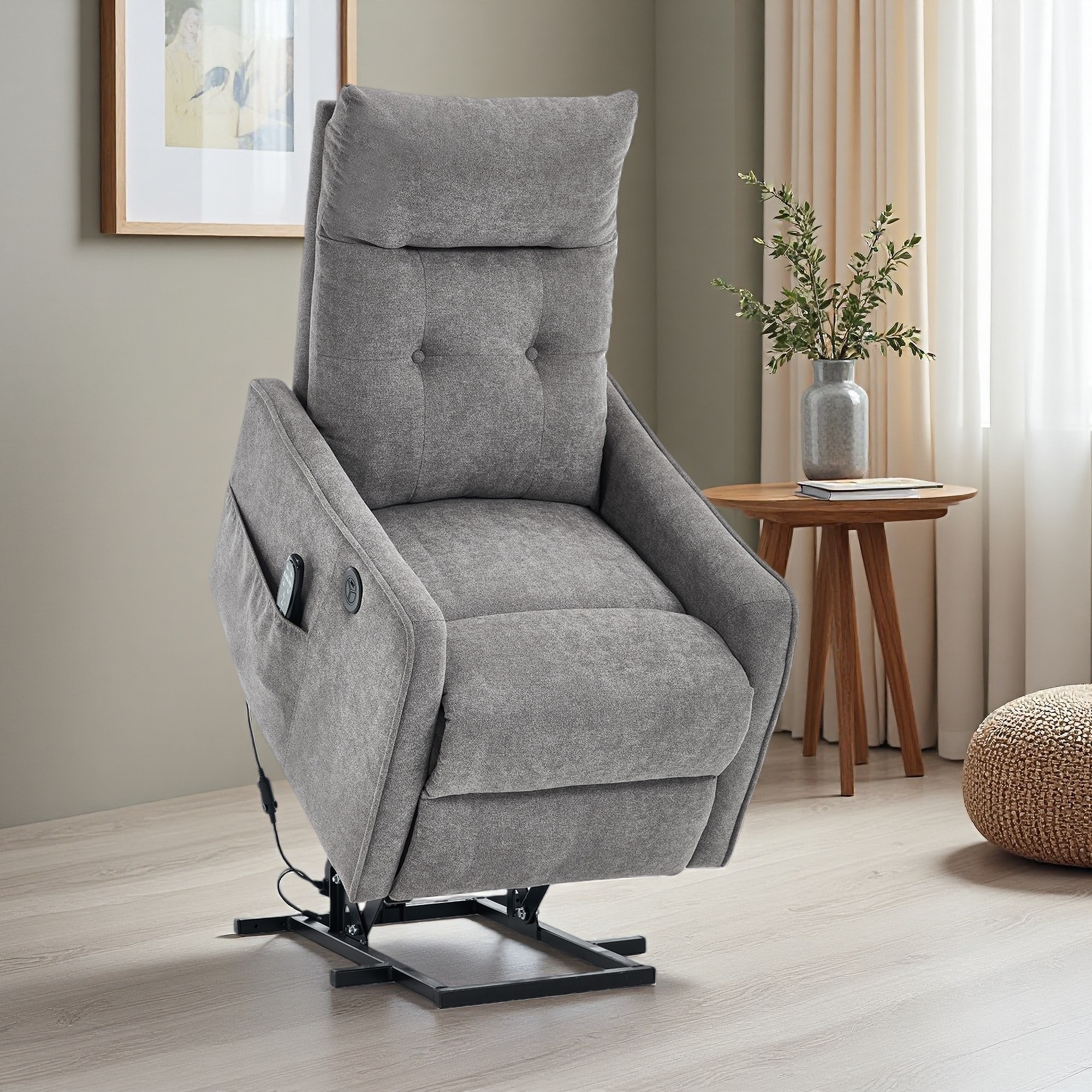 Chenille Single Motor Power Lift Recliner with Heat Massage and USB Charging Port