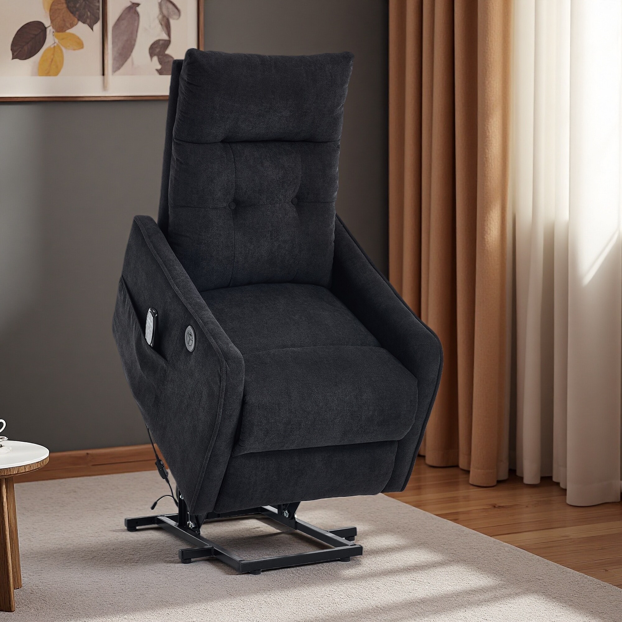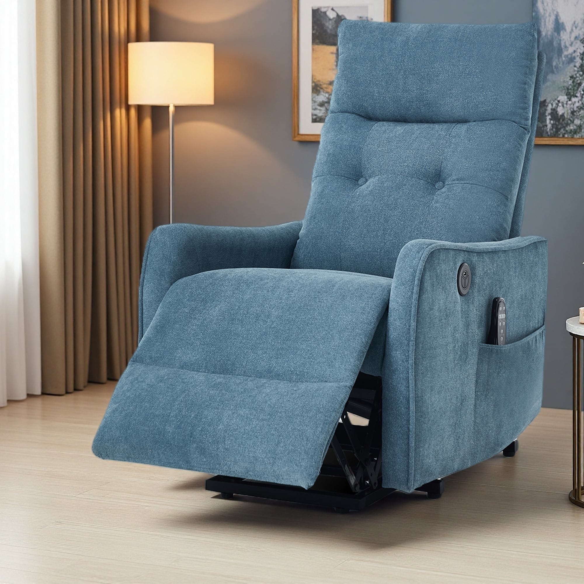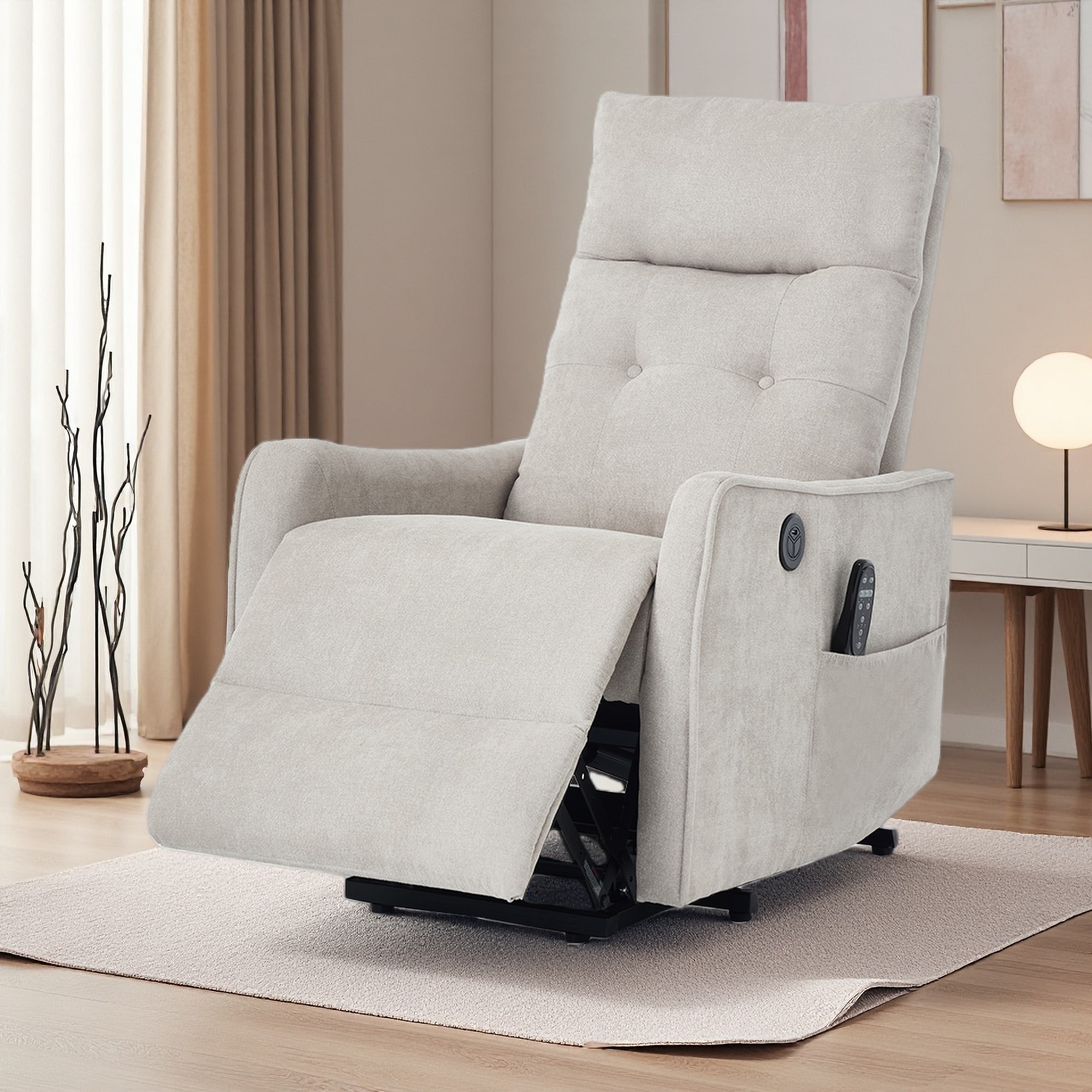 Chenille Single Motor Power Lift Recliner with Heat Massage and USB Charging Port
