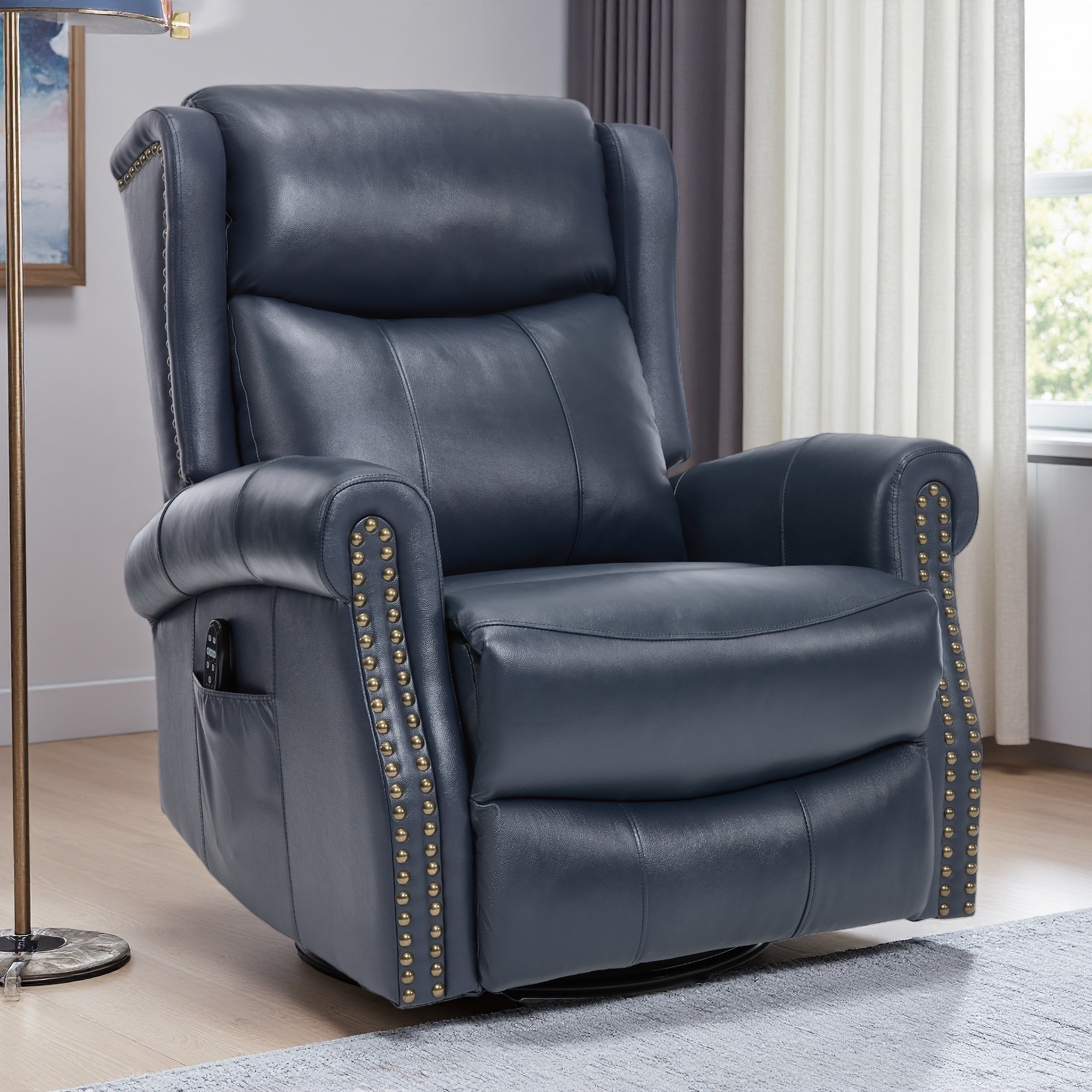 Metal Leather Manual Recliner with Swivel & Heat Massage