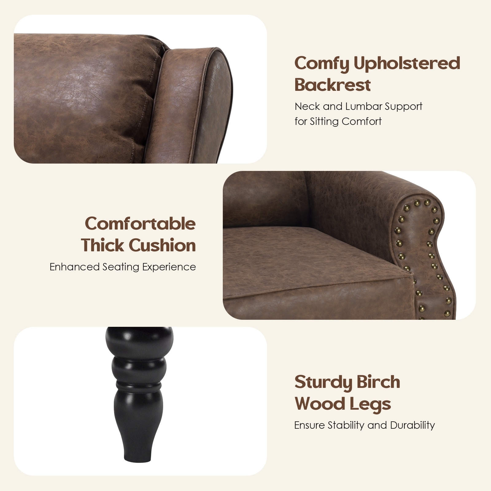 Leather Pushback Recliner Chair, Lounge Chair with Lumbar Support, Single Sofa Chair Leisure Chair