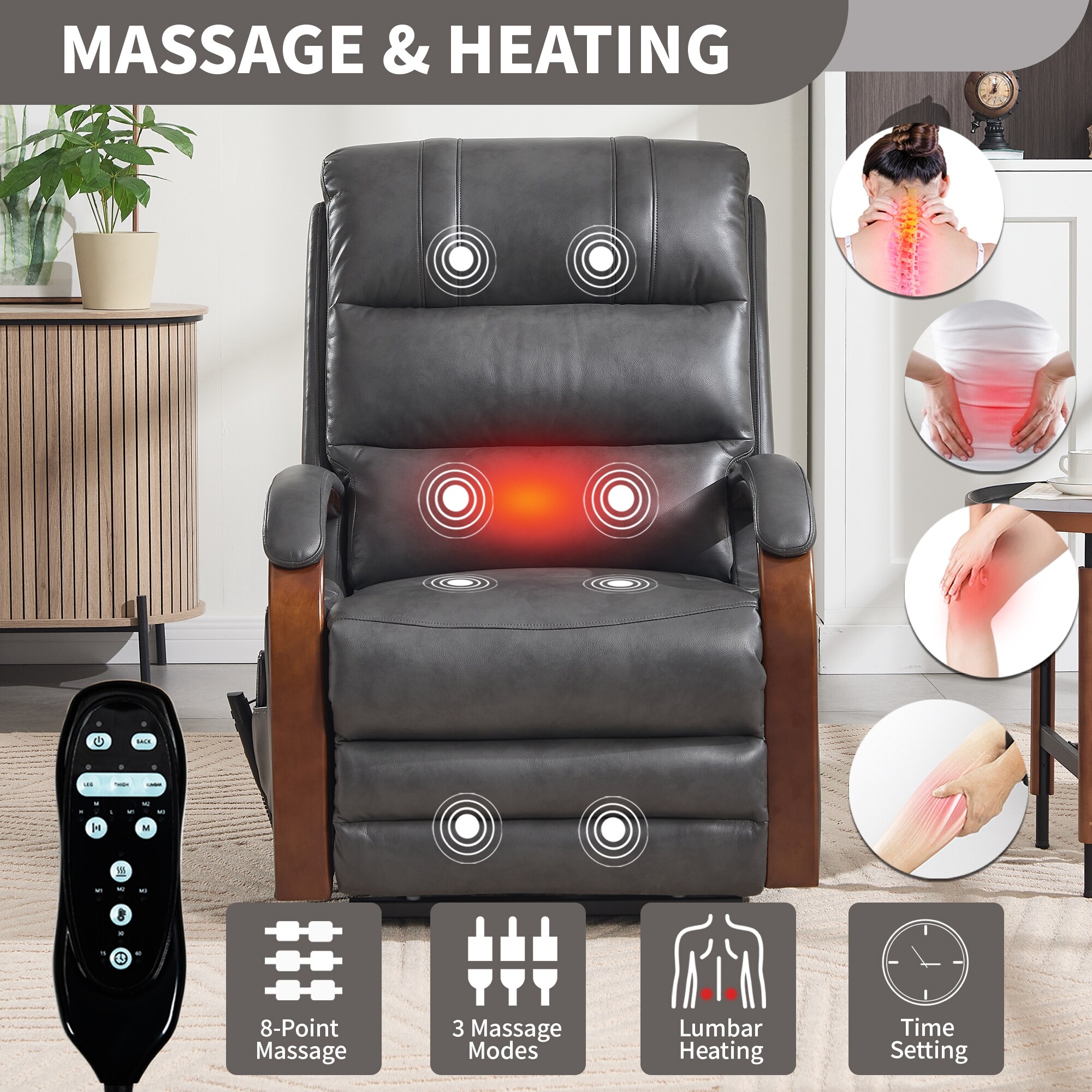 Faux Leather Power Lift Recliner Chair for Elderly, Electric Glider Reclining Sofa with Massage and Heat, Heavy Duty Lift Base