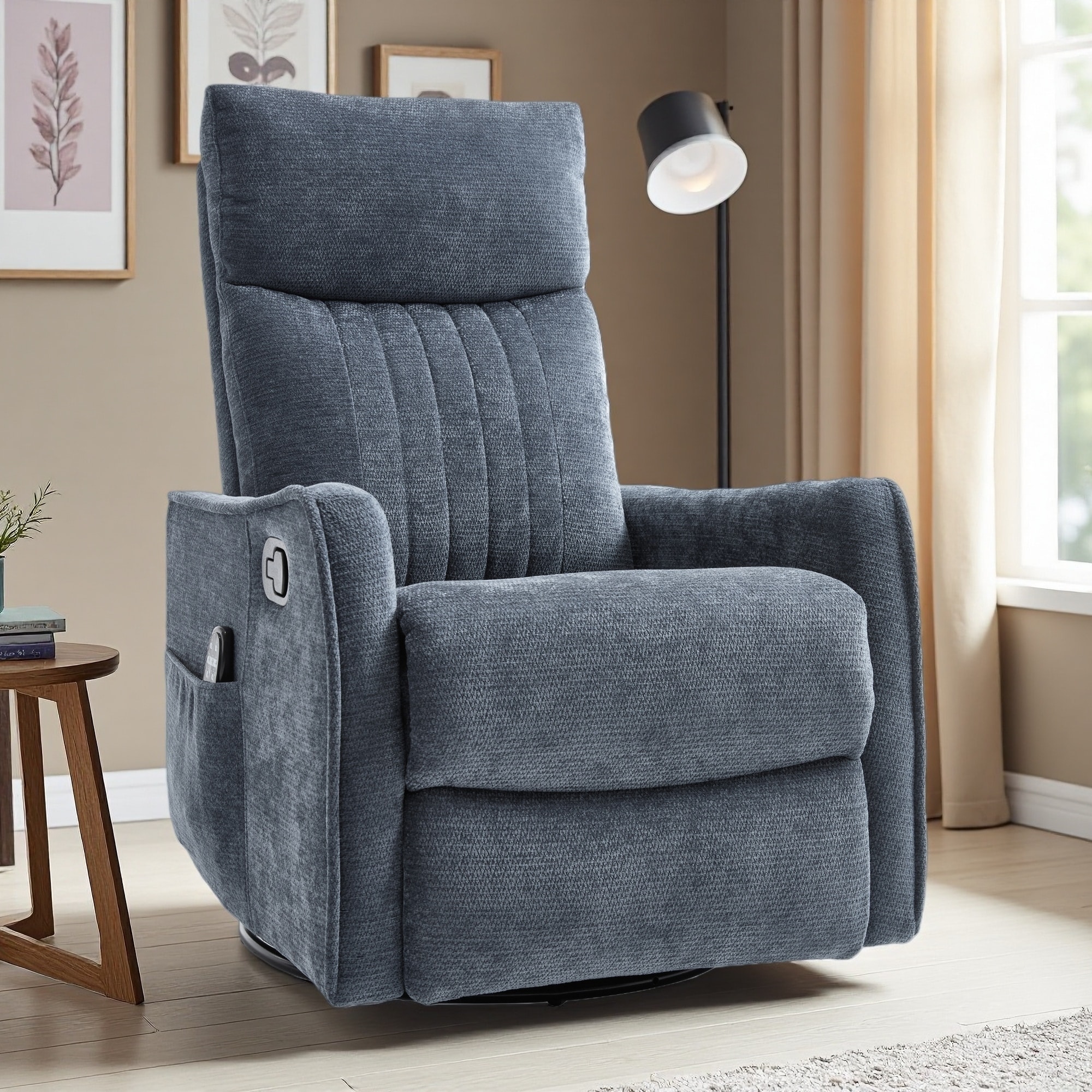 35.4" Wide Manual Recliner Chair, Chenille Upholstery Swivel Nursery Rocking Chair
