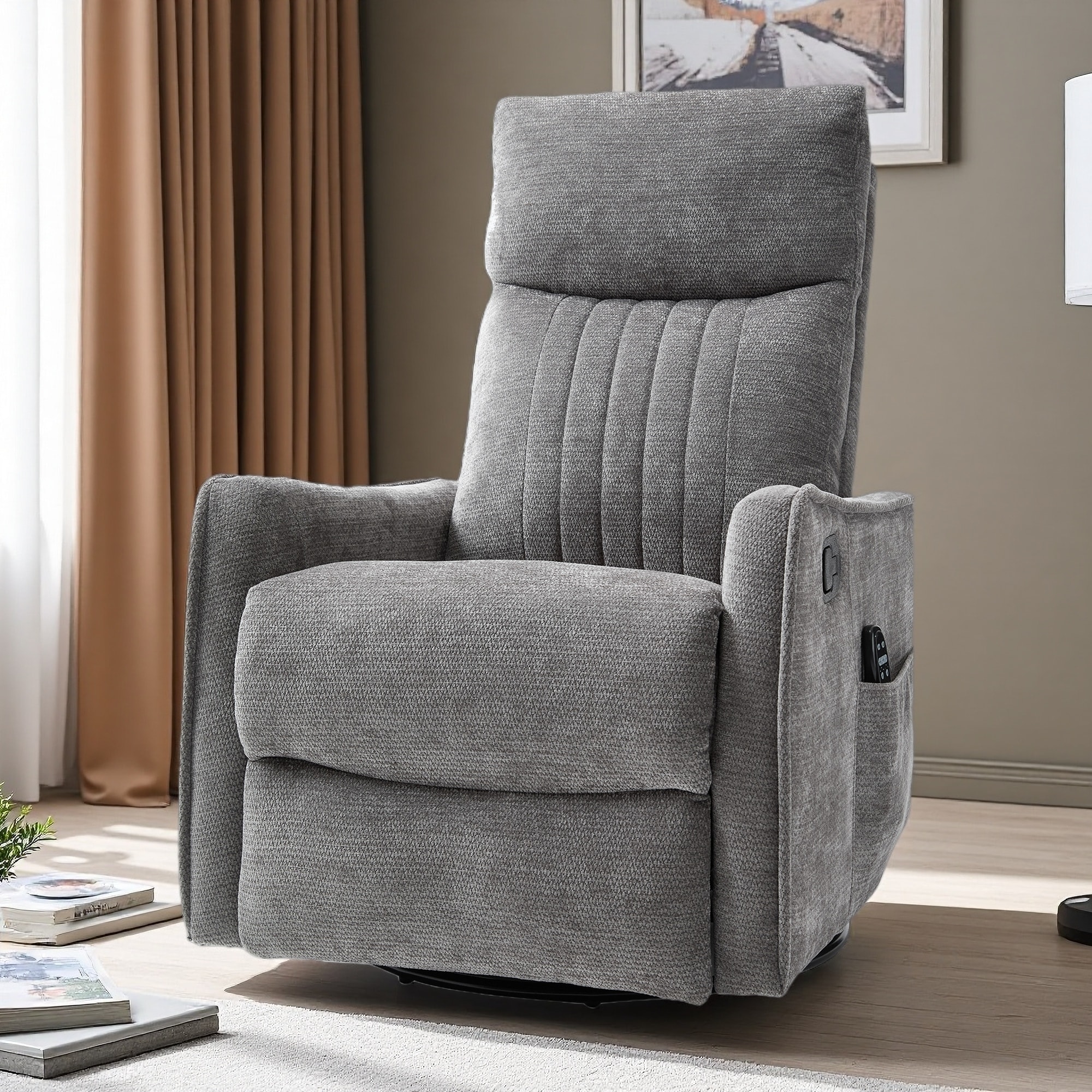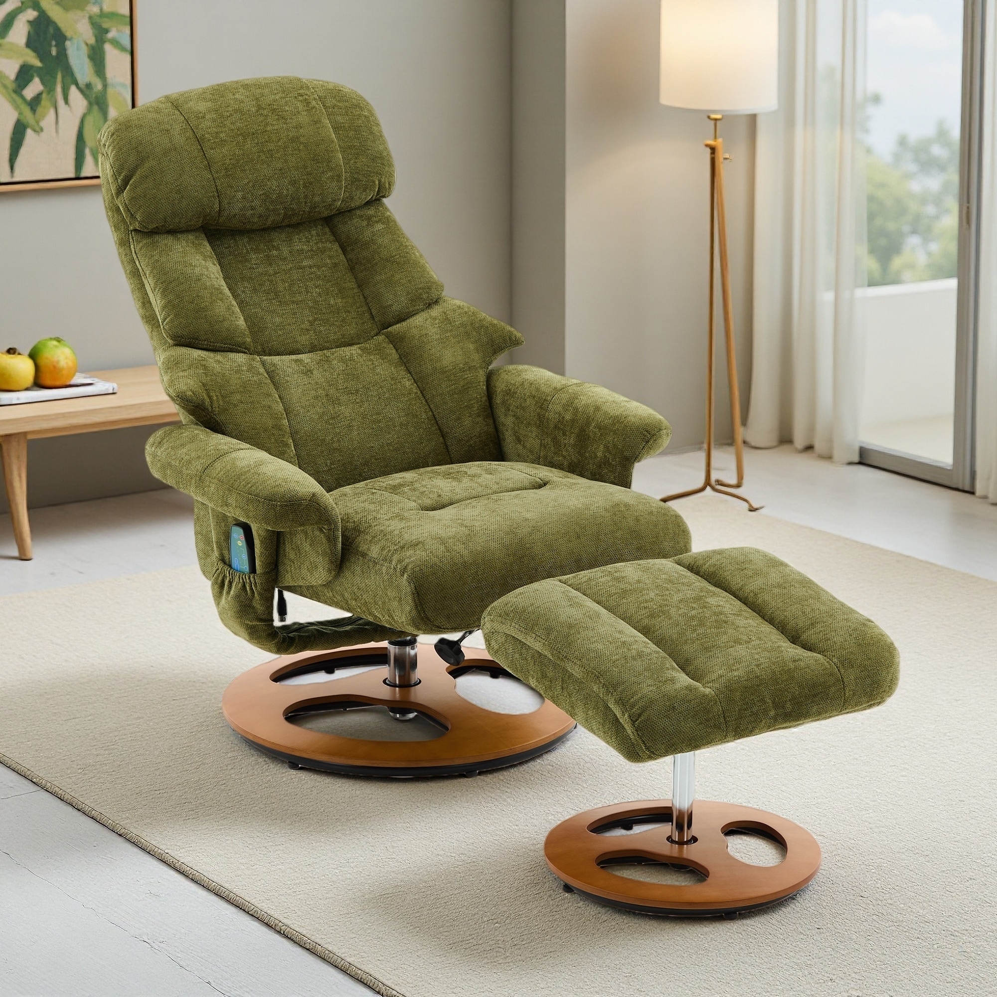 Chenille Ergonomic Swivel Recliner with Ottoman & Vibration