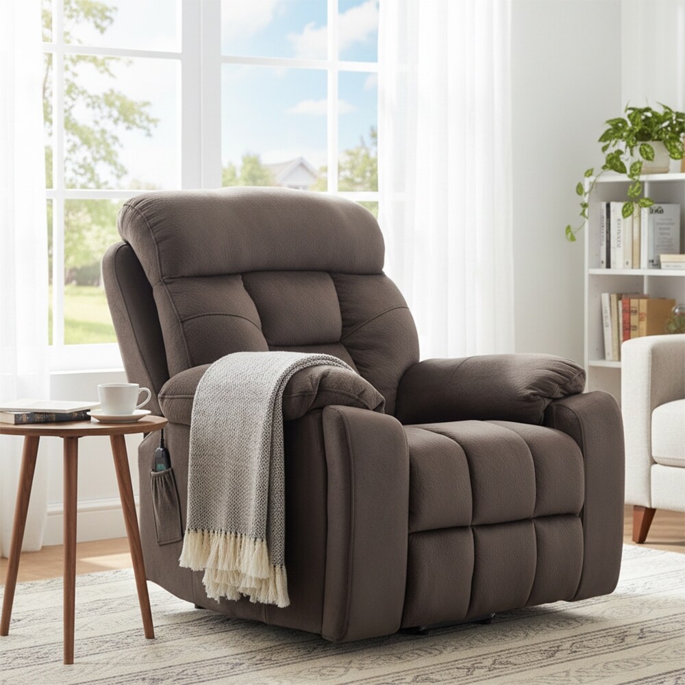 Polished Microfiber Power Motion Recliner Chair with Lift, Heating & Massage