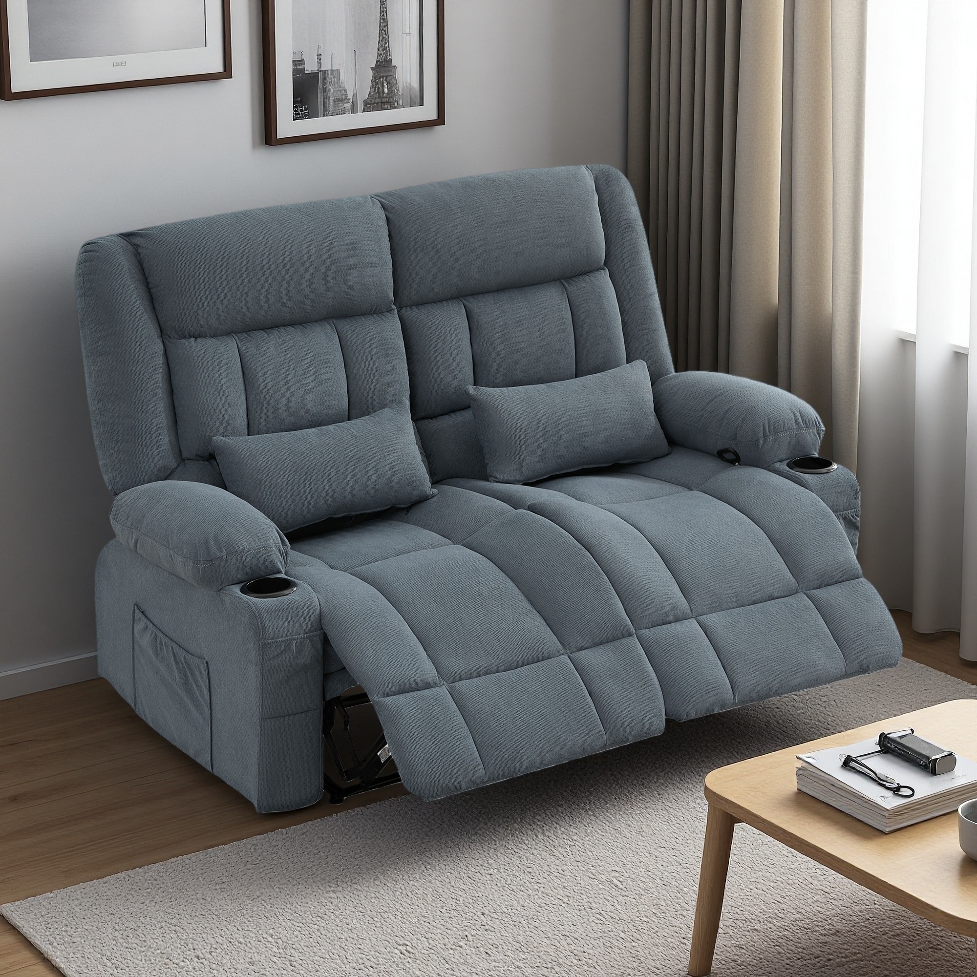 Corduroy recliner sofa with armrests, storage function, and footstool