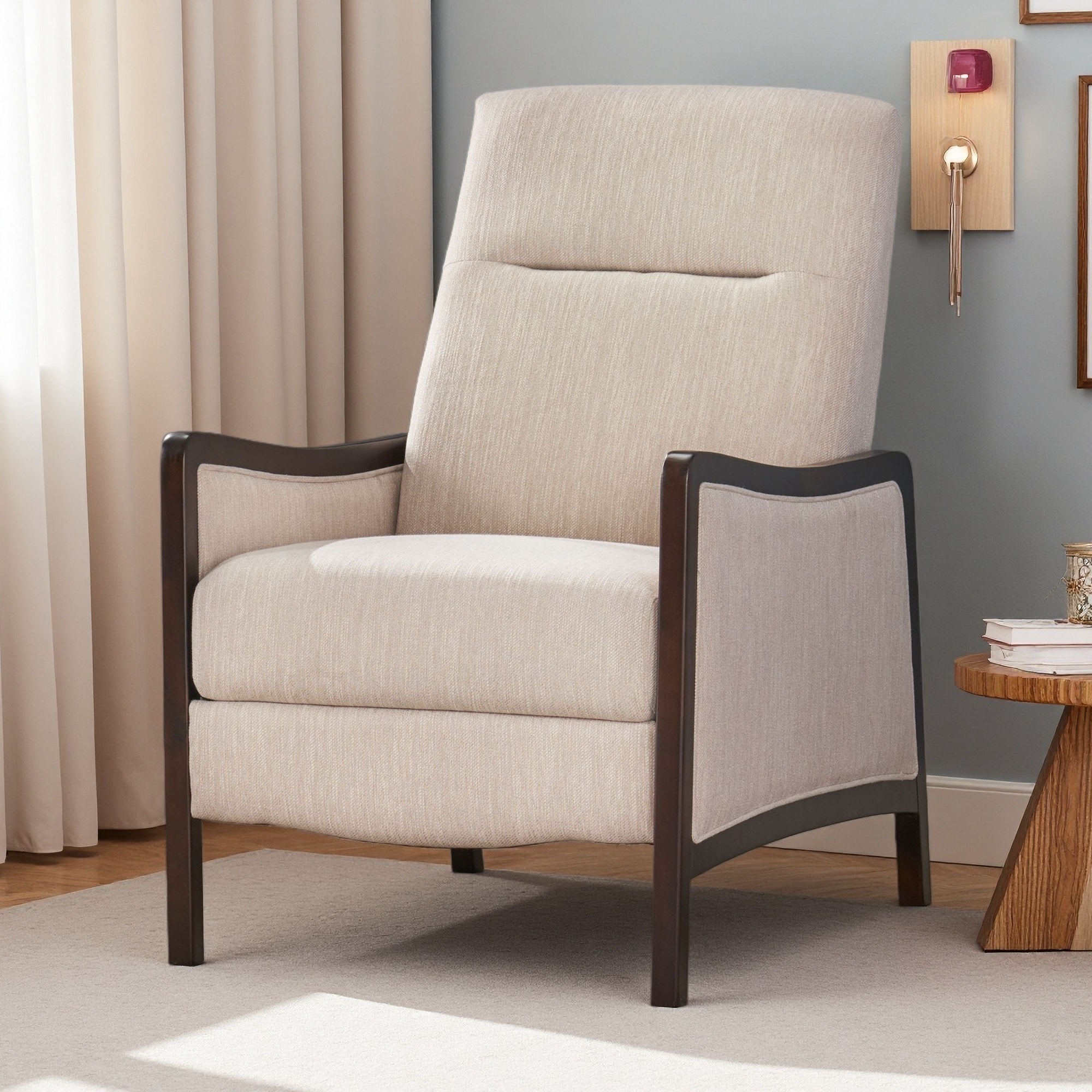 Fabric Push-Back Recliner Chair with Birchwood Frame & Mid-Century Design