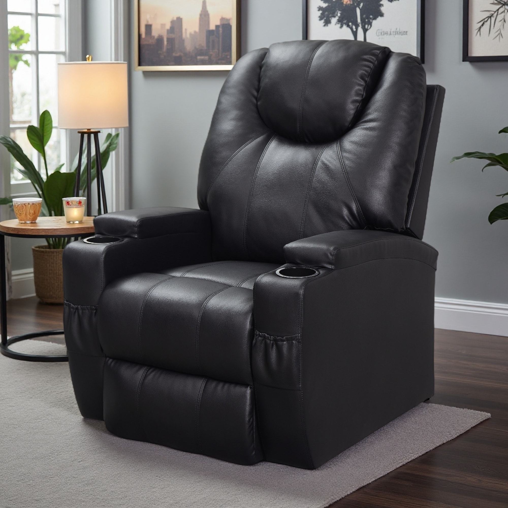 Faux Leather Recliner Chair with Cup Holders & Remote Control