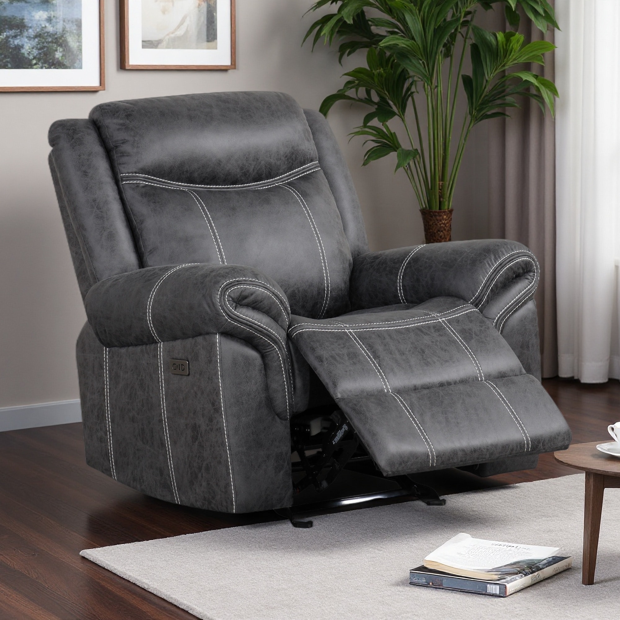 Upholstered Swivel Glider Recliner Chair with USB & Lumbar Support