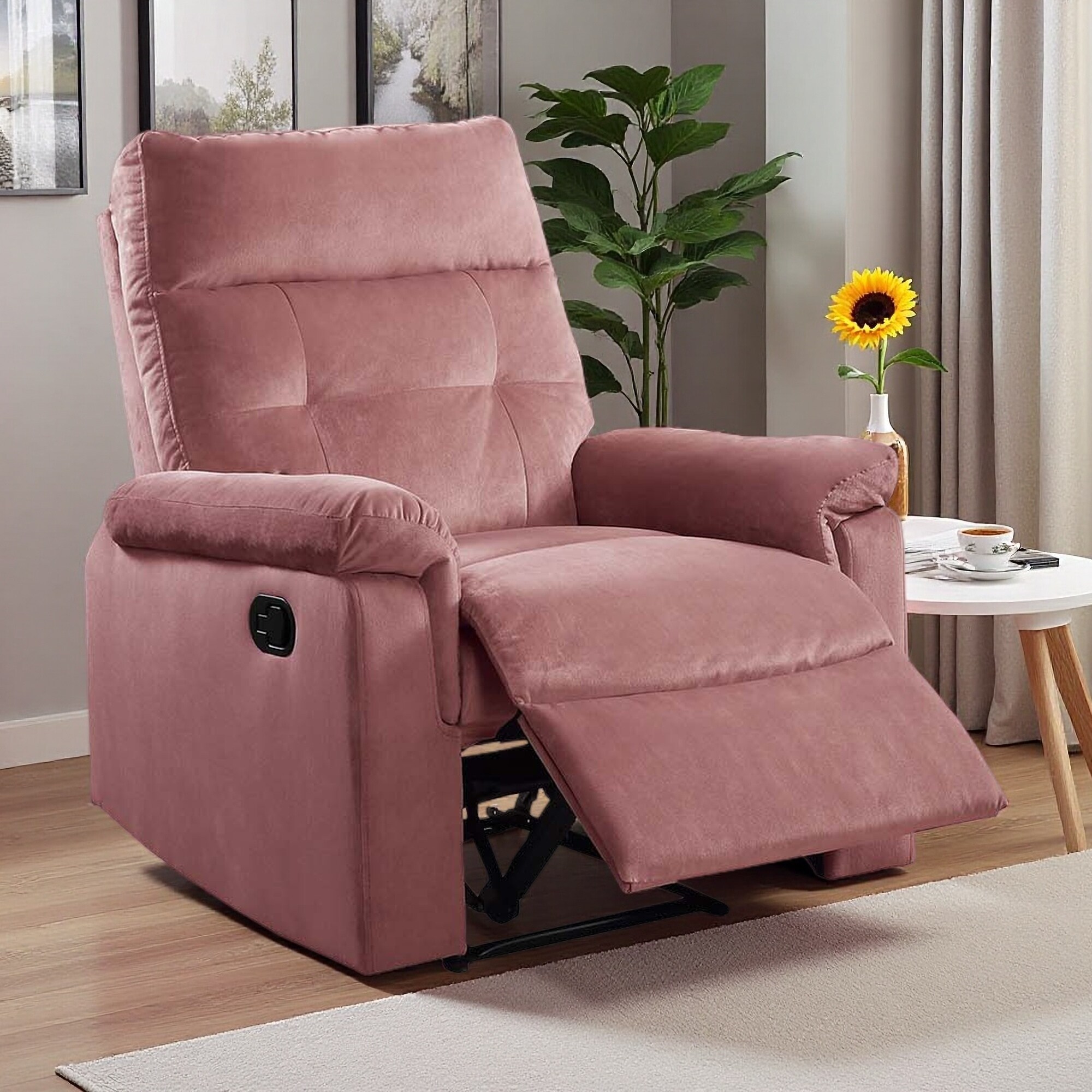 Velvet Manual Recliner Chair with Pillow-Top Arms & Cushion Back
