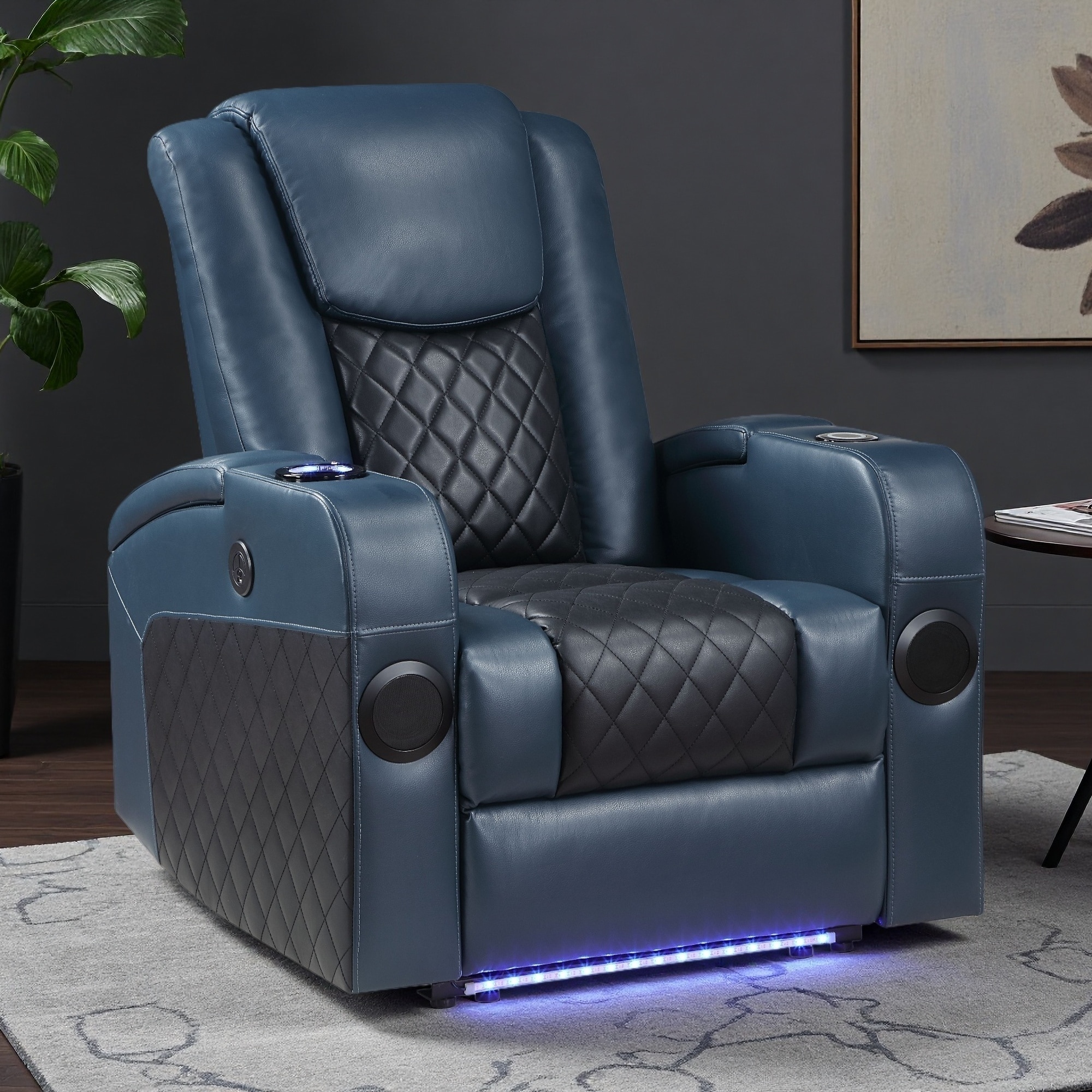 Faux Leather Power Motion Recliner Chair with Bluetooth, Wireless Charger & LED
