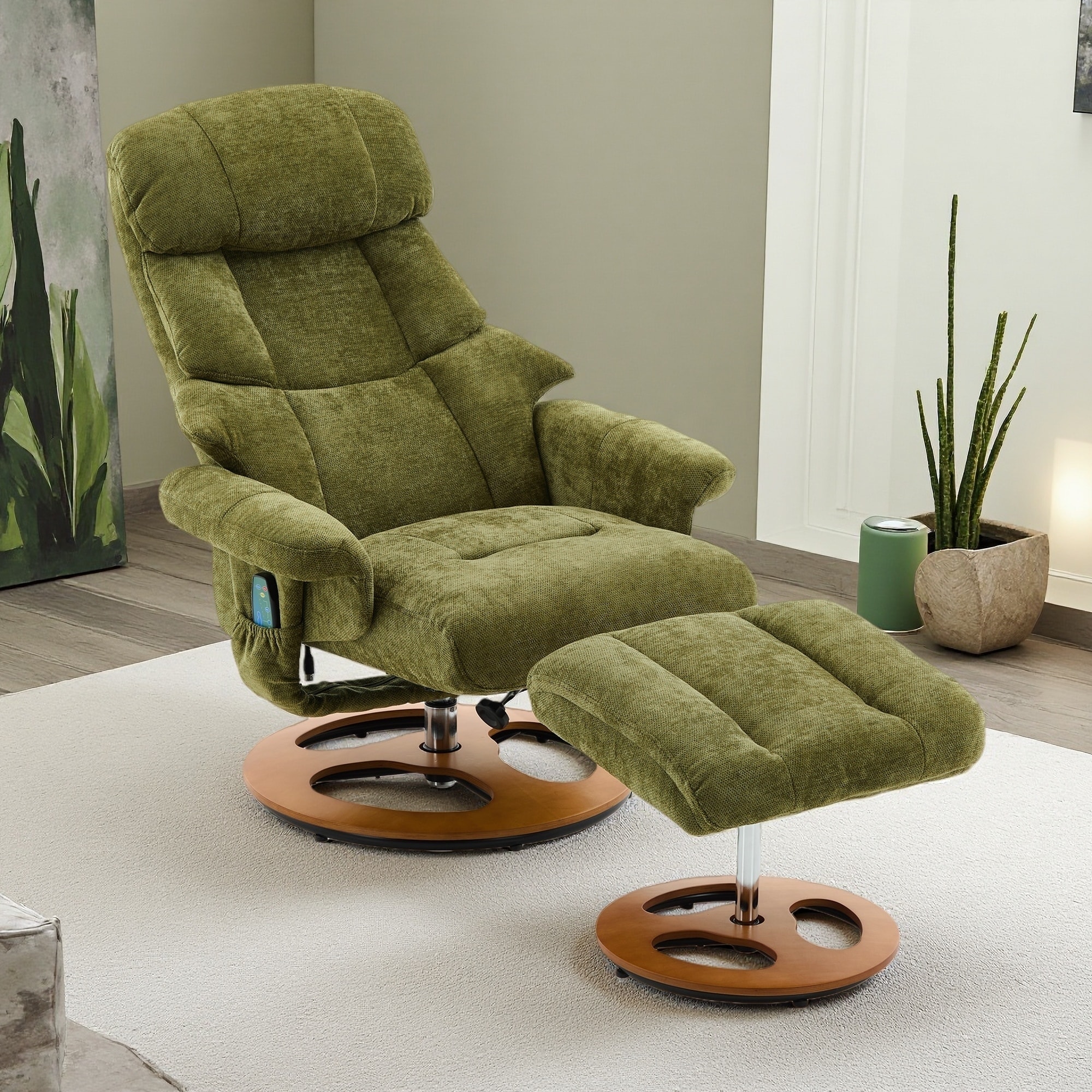 Chenille Ergonomic Swivel Recliner Chair with Ottoman and 5-Point Vibration Massage