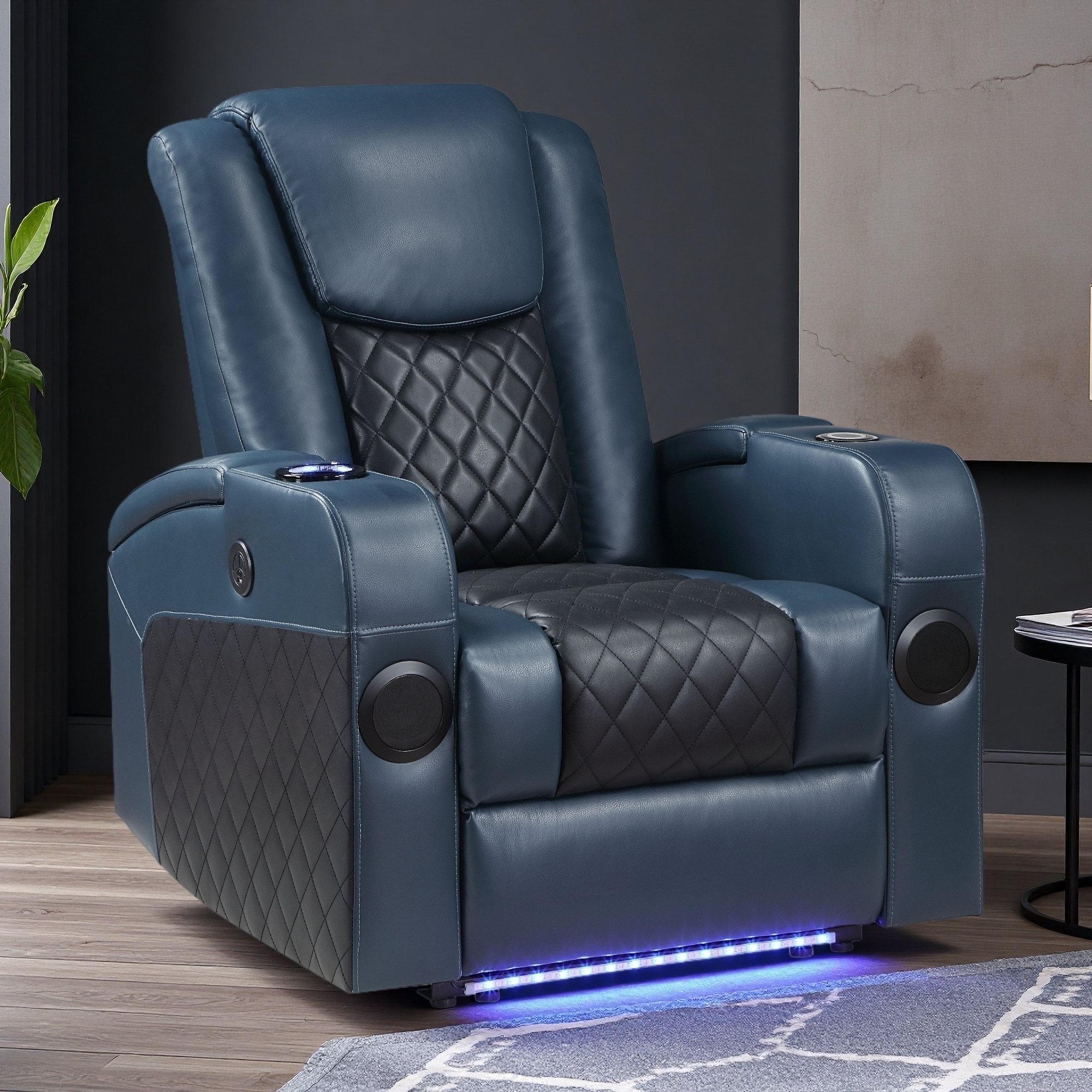 Faux Leather Power Motion Recliner with Bluetooth, Wireless Charger, Cooling Cup Holder & LED Lights