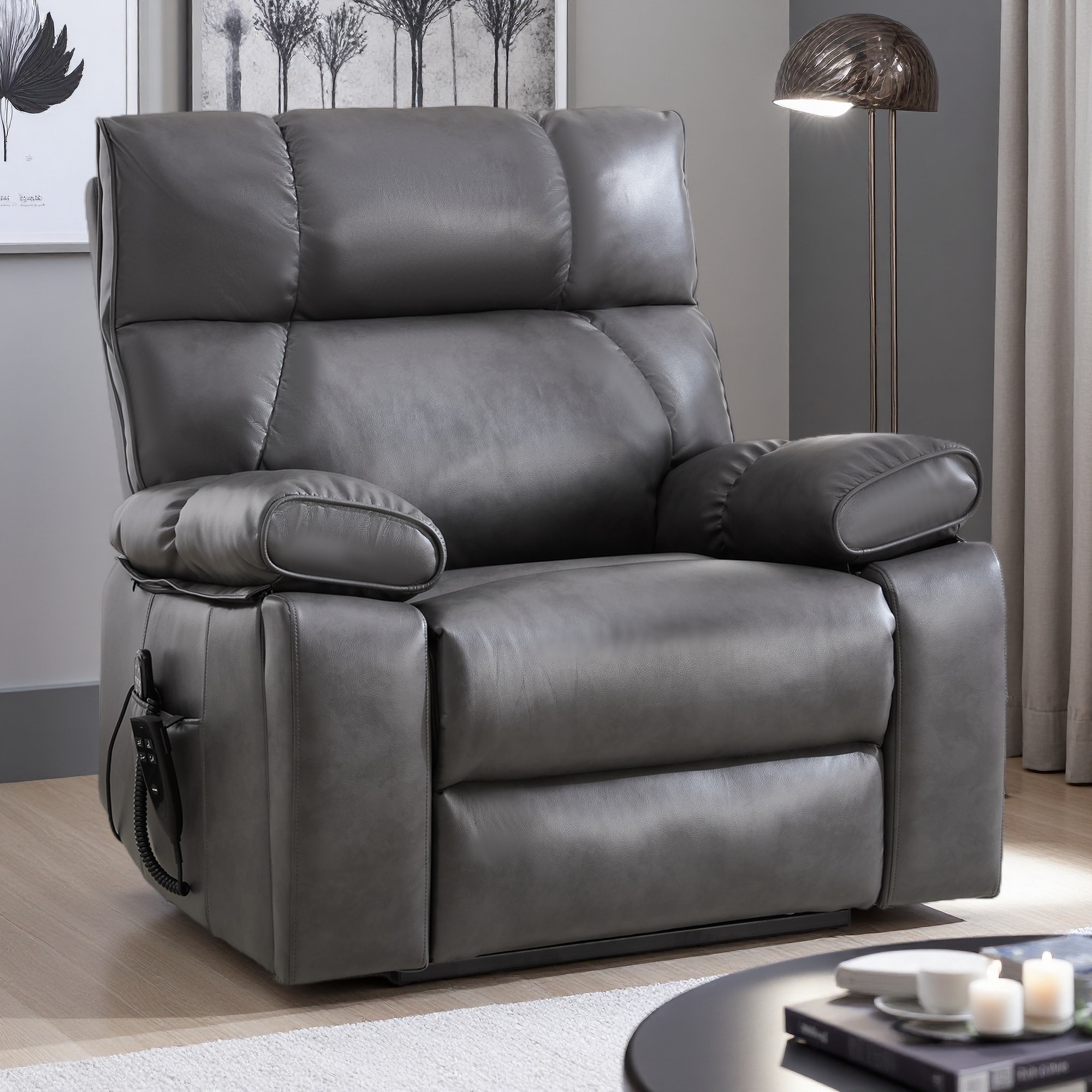PU Leather Power Remote-Control Recliner with Heating Massage and Assistive Lift