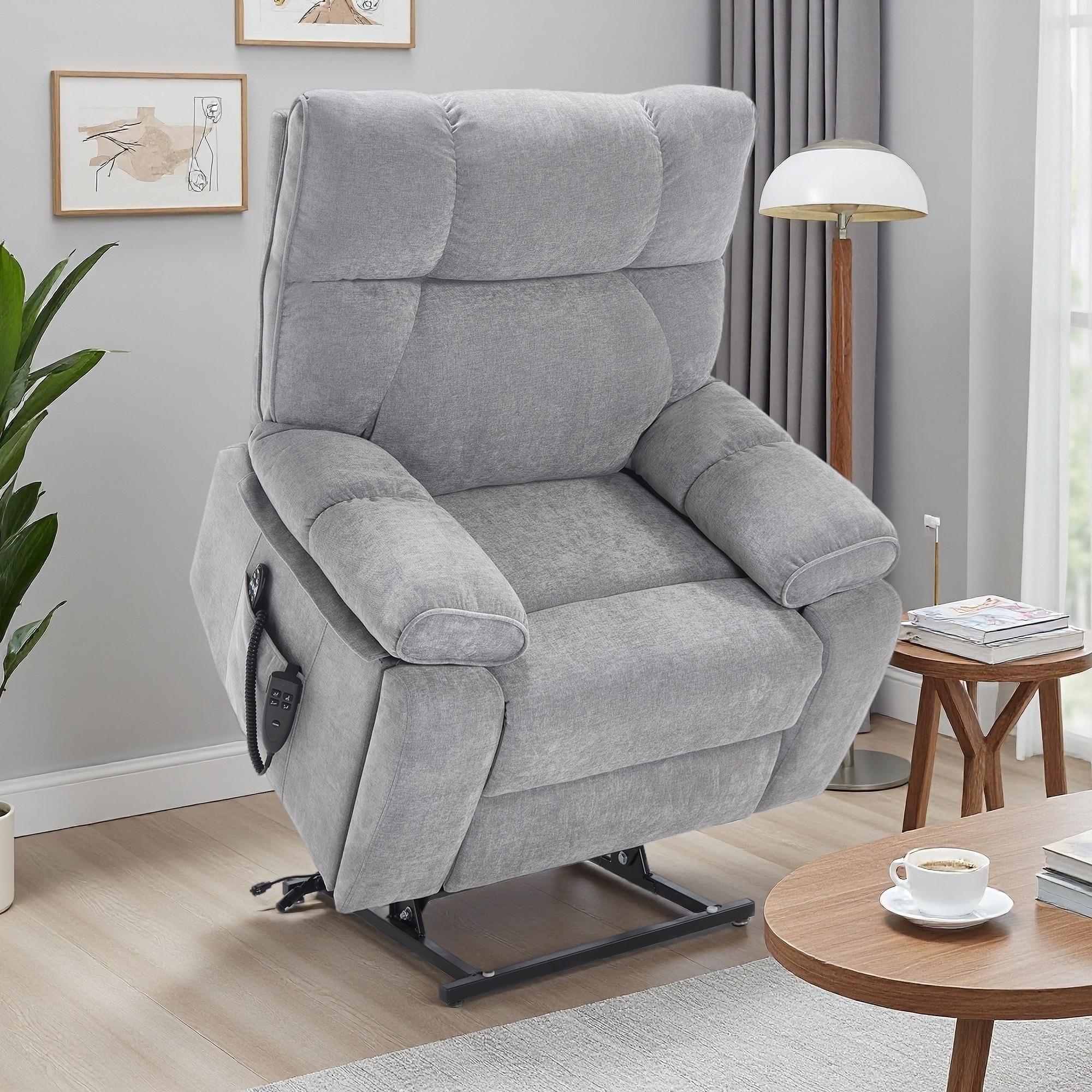 High Density Foam Lift Sofa with Heat and Massage, Oversized Single Chenille Sofa w/2 Cup Holder & Side Pocket, for Living Room