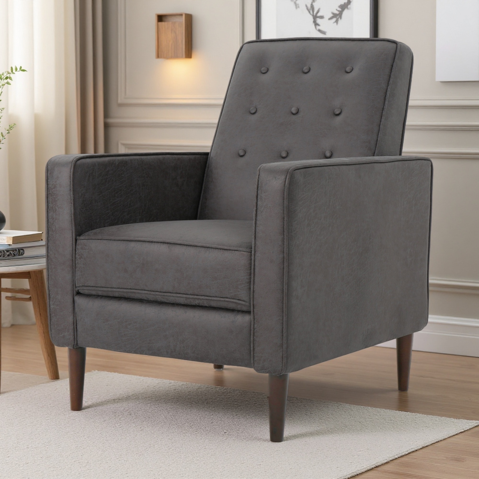 Upholstered Mid-Century Recliner Chair with Thick Seat Cushion & Wood Legs
