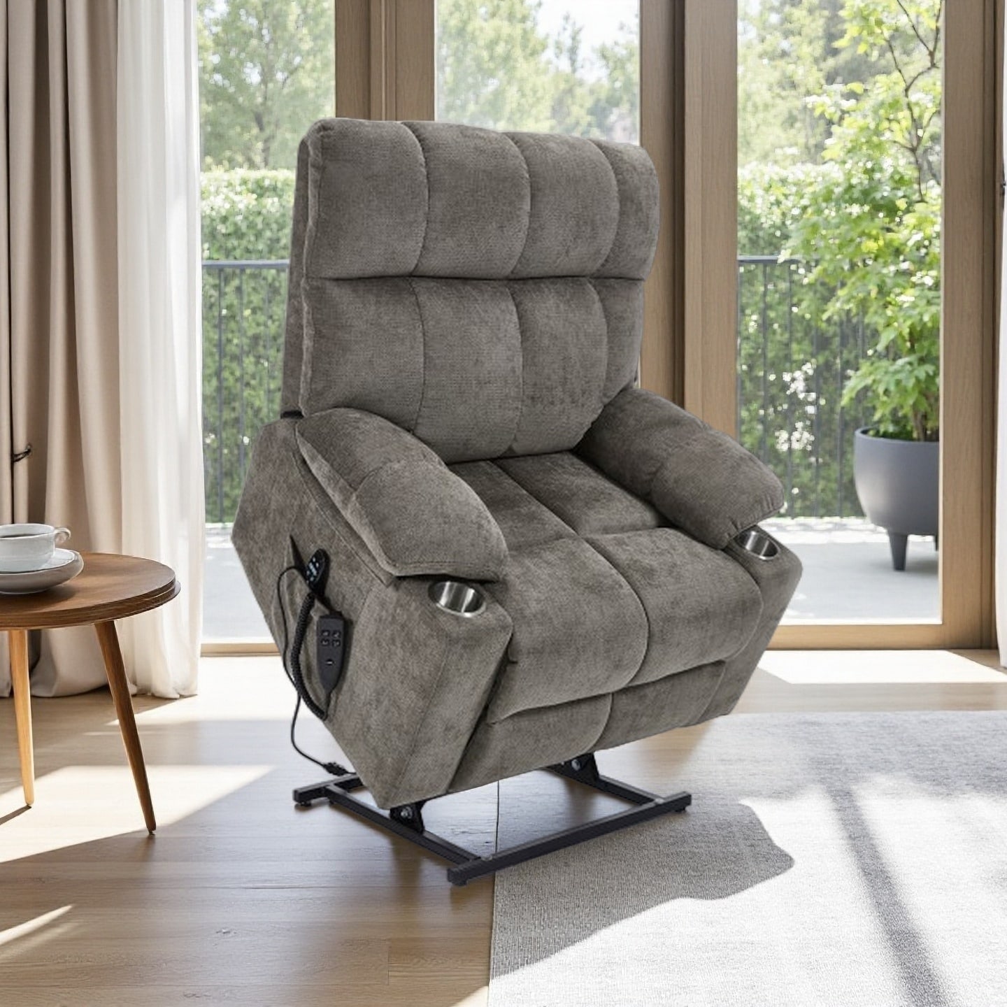 Power Lift Massage Recliner Chairs with Lumbar Heat, 8 Vibration Massage, 2 Cup Holder Chenille Reclining Sofa with Charging