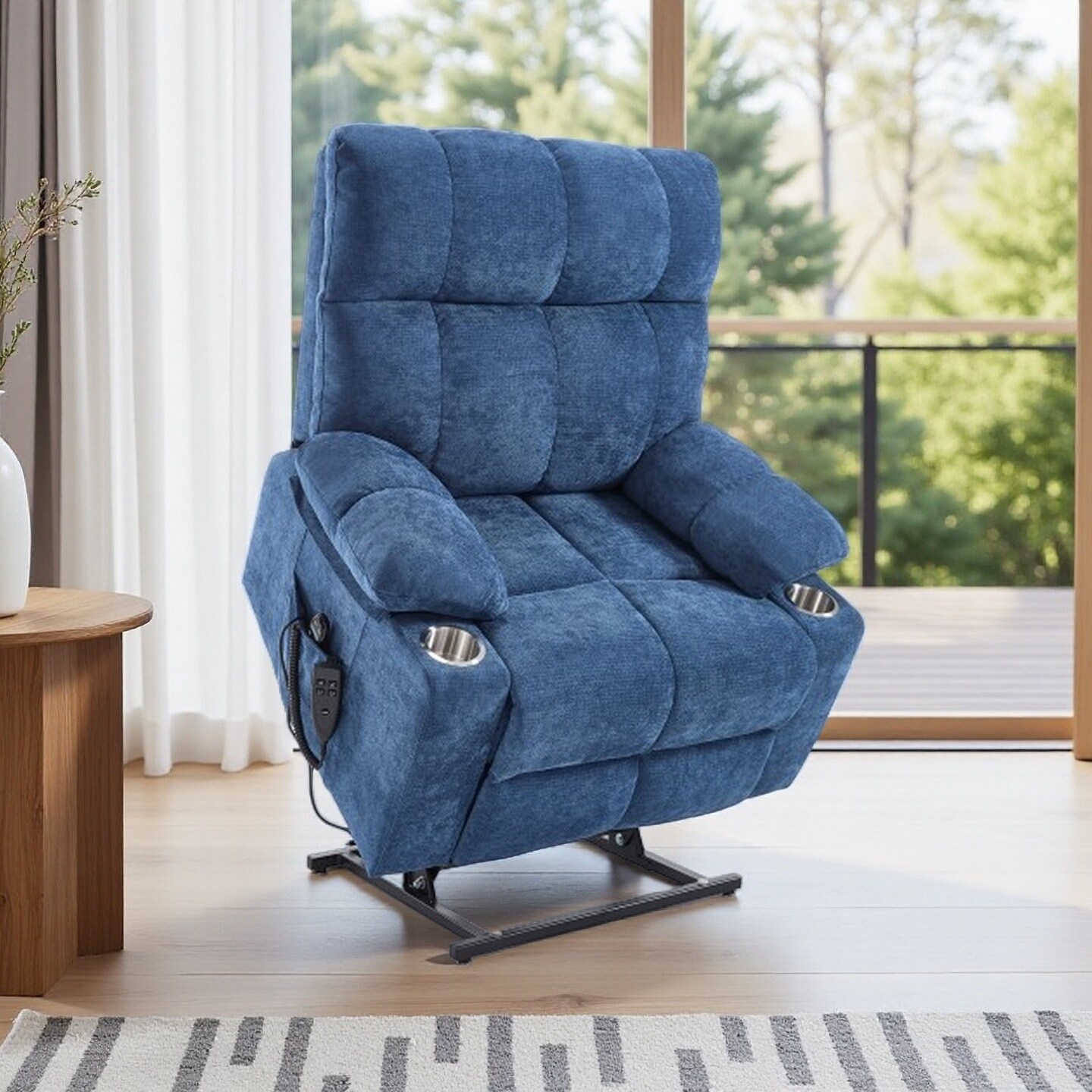 Power Lift Recliner Chair for Elderly, Dual Motor Infinite Position Sofa with Heat, 8-Point Vibration Massage, Cup Holders
