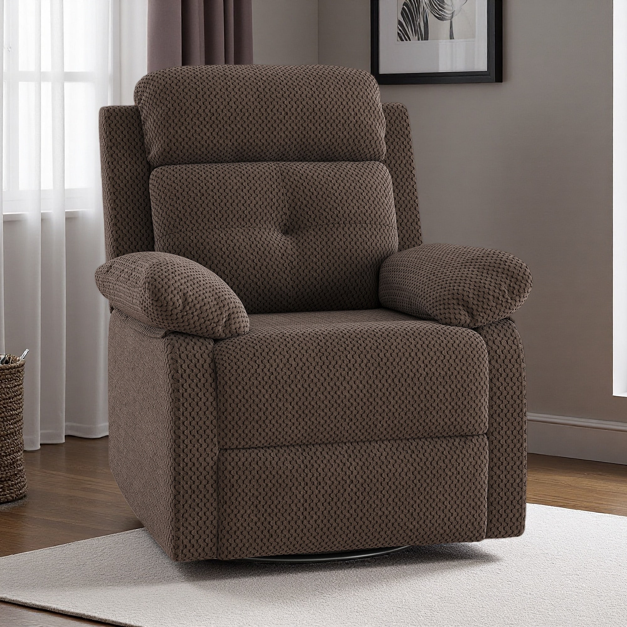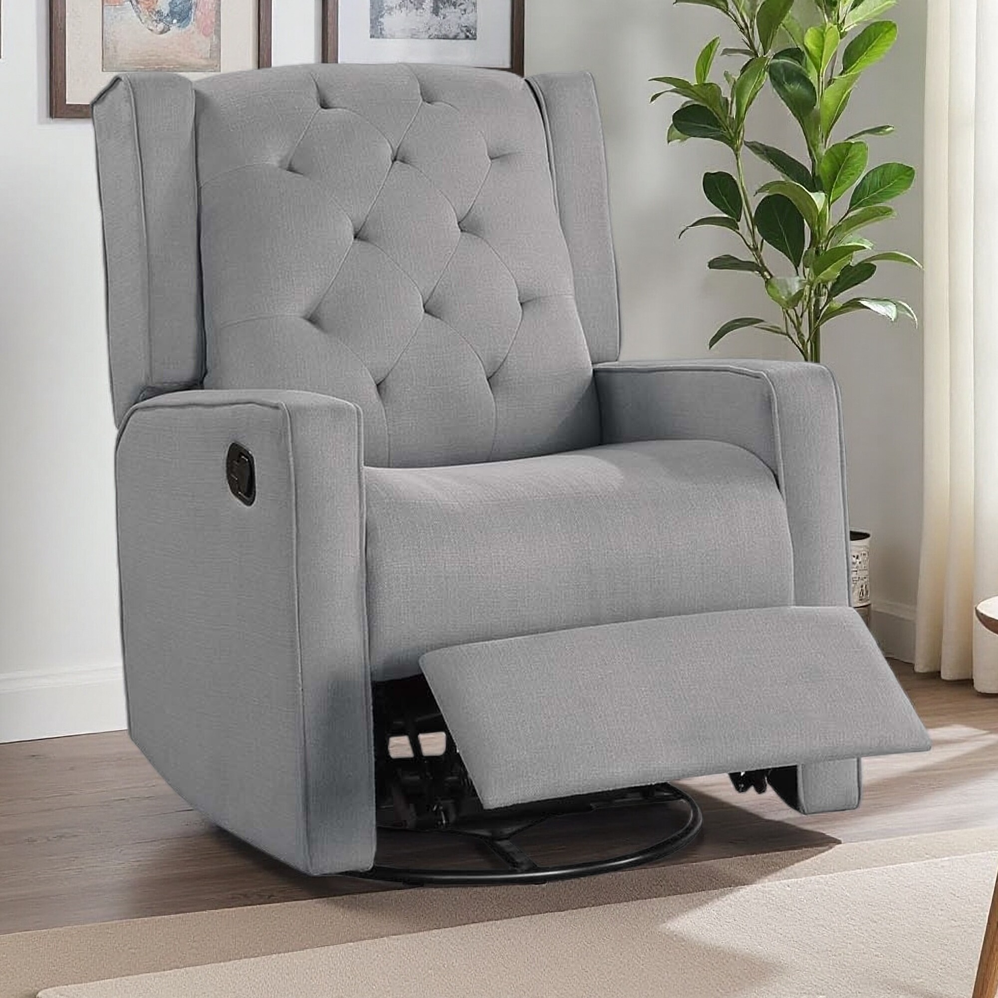 Fabric Swivel Glider Recliner Chair with Manual Handle & Square Arms