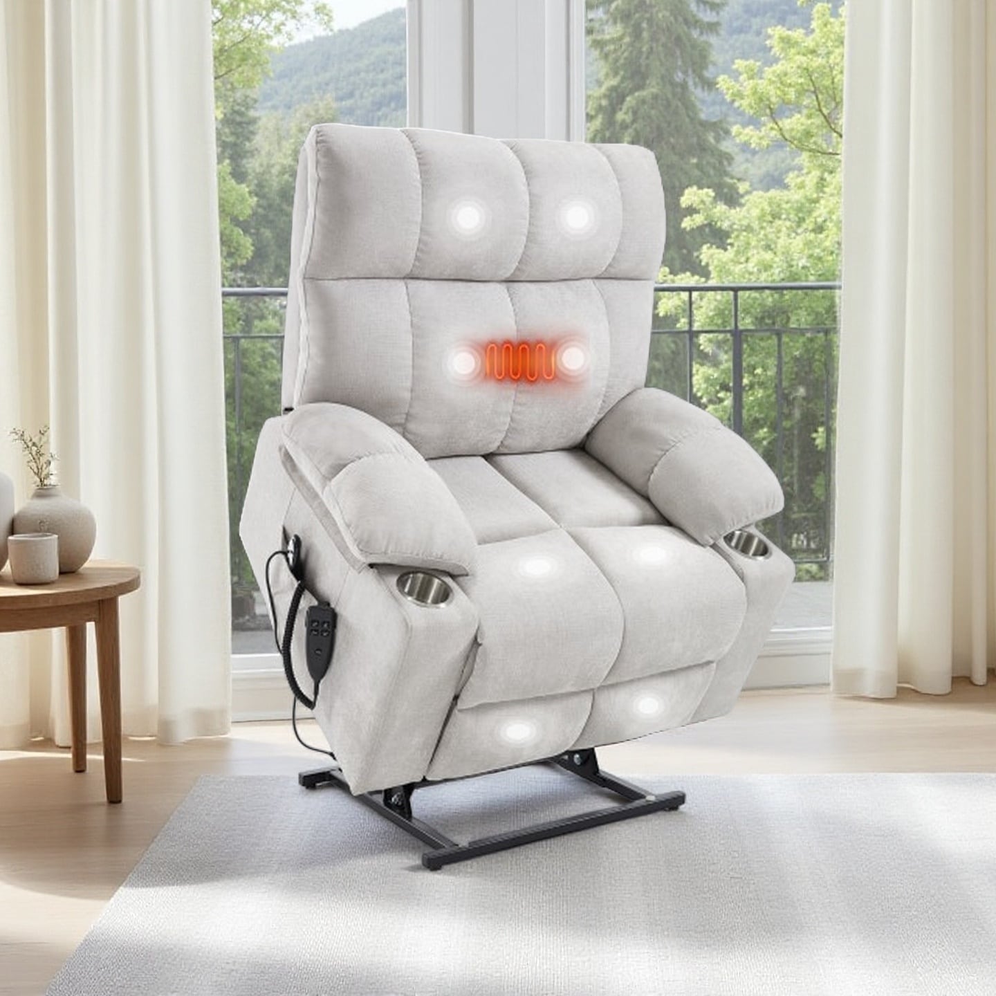 Sofa Chair Leisure Chair with Cup Holders, Power Lift Recliner Chair, Lounge Chair with Massage & Lumbar Heating