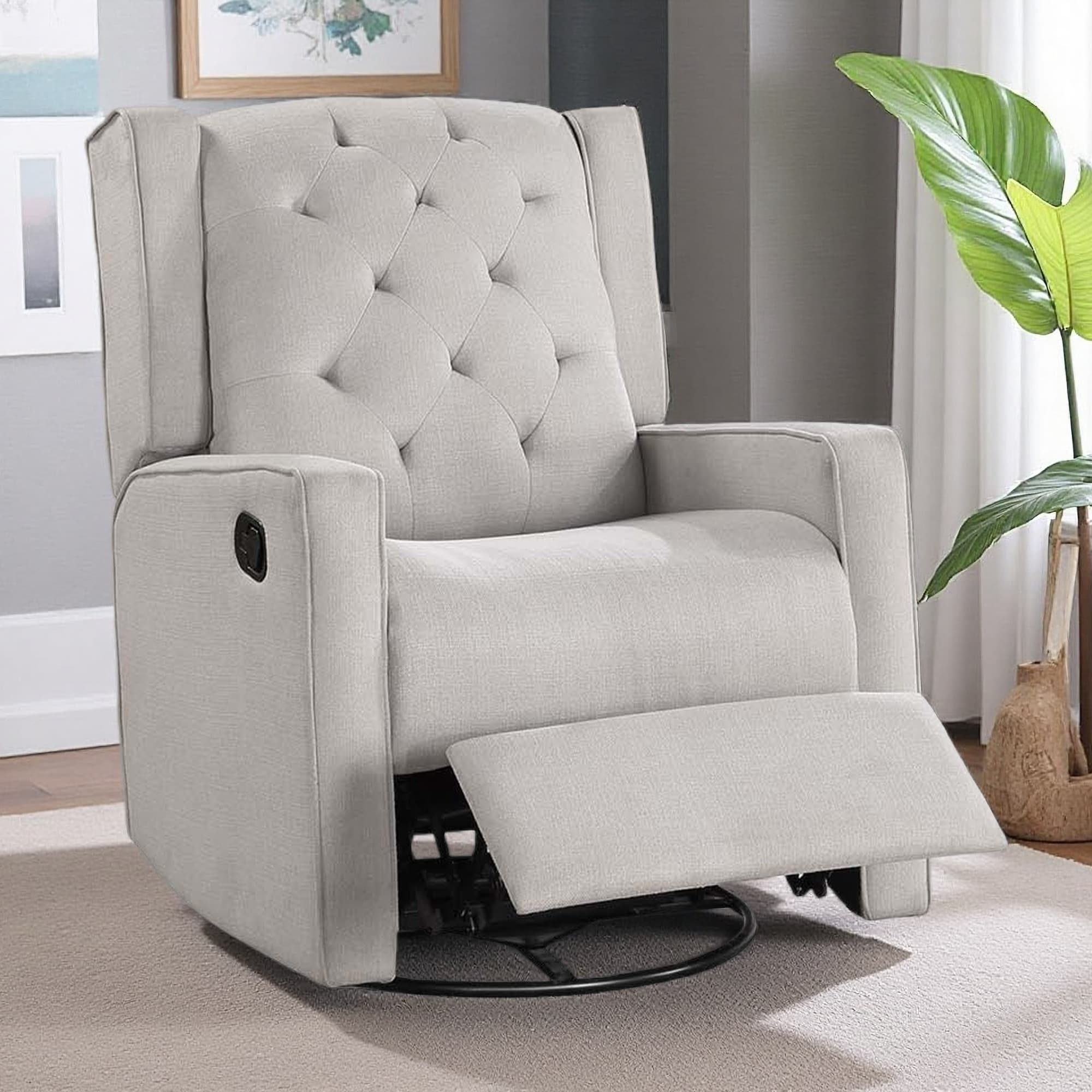 Fabric Swivel Glider Recliner Chair with Manual Handle & Square Arms