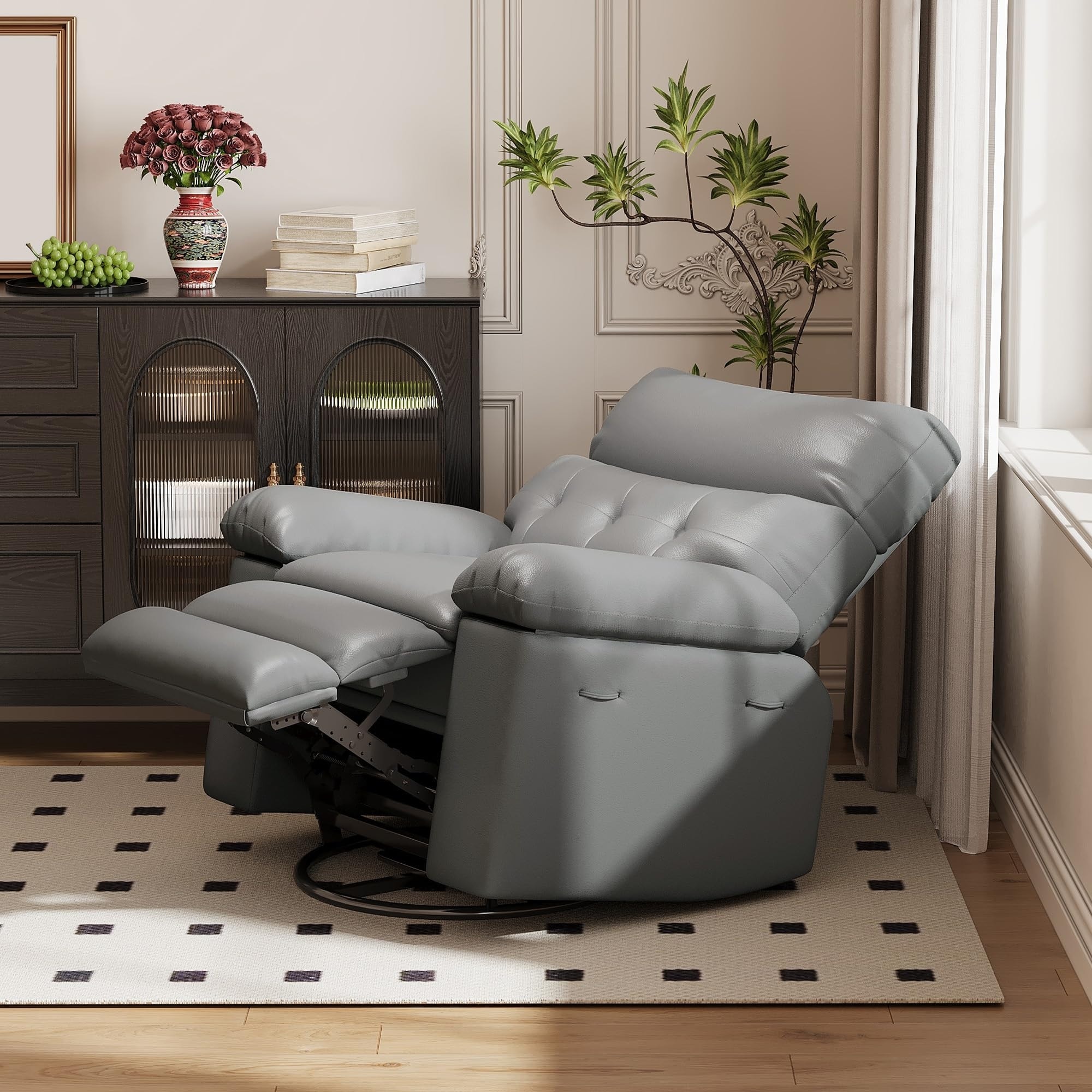 Modern Recliner Chair with Ottoman - 360° Swivel, Chenille Fabric, 140° Adjustable Backrest