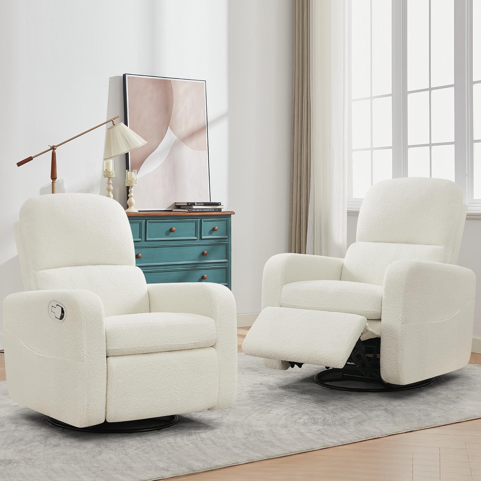 Swivel Manual Recliner Chair Teddy Fabric Nursery Glider Rocking Recliner Set of 2