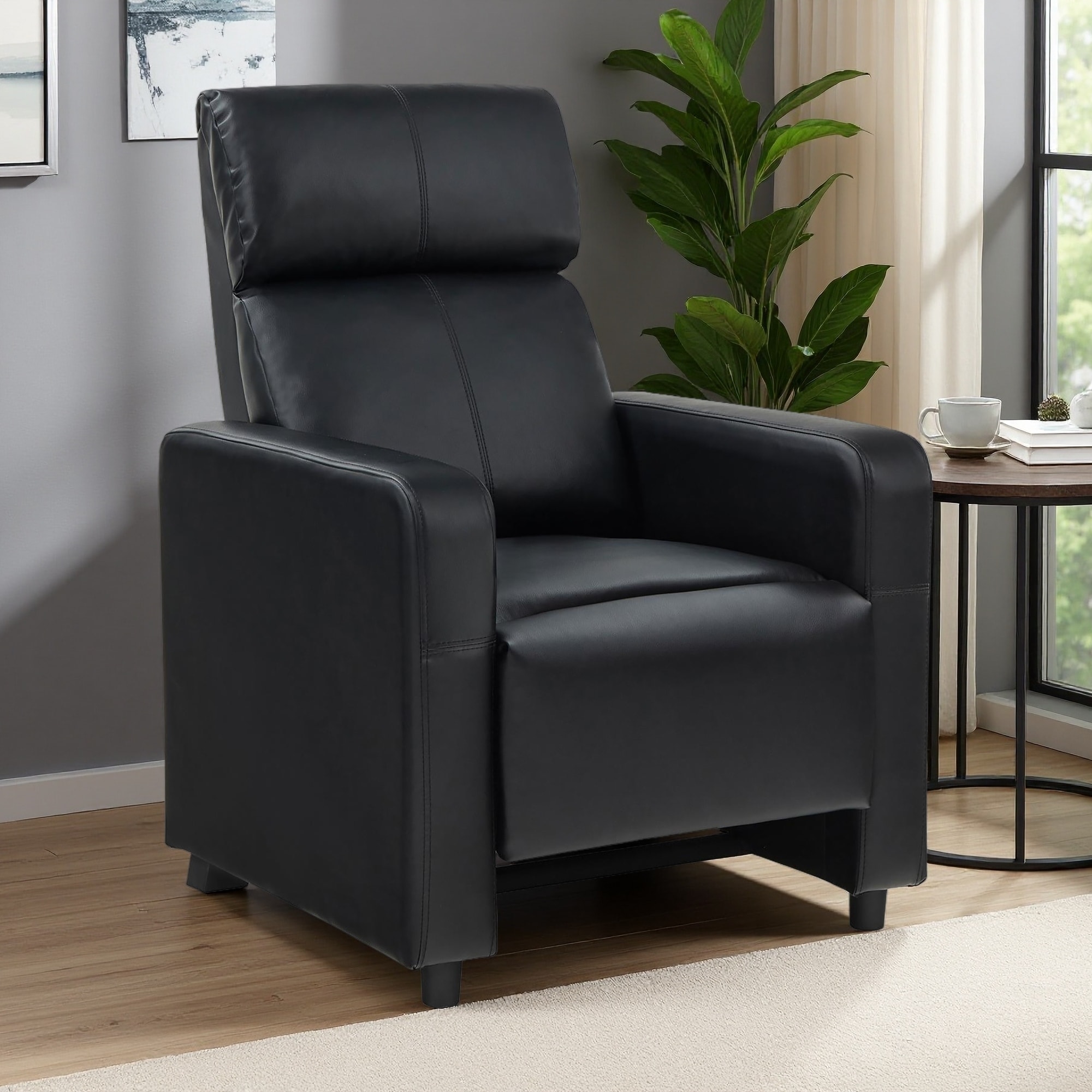 Faux Leather Push-Back Recliner Chair with Tufted Back & Upholstered Seat