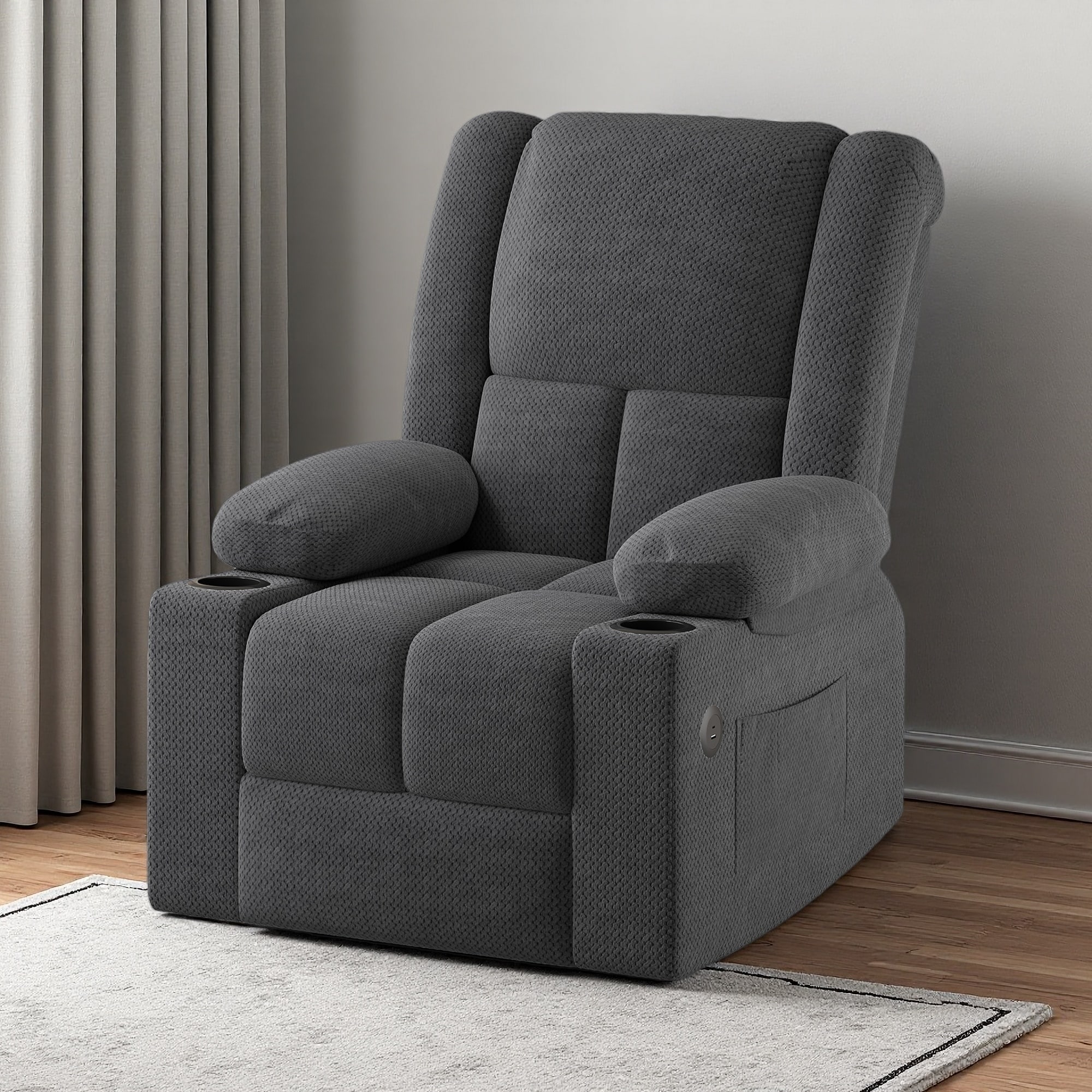 360° Swive Recliner with 8-Point Vibration, Heated, USB Charging Port, Cup Holders and Side Storage Pockets