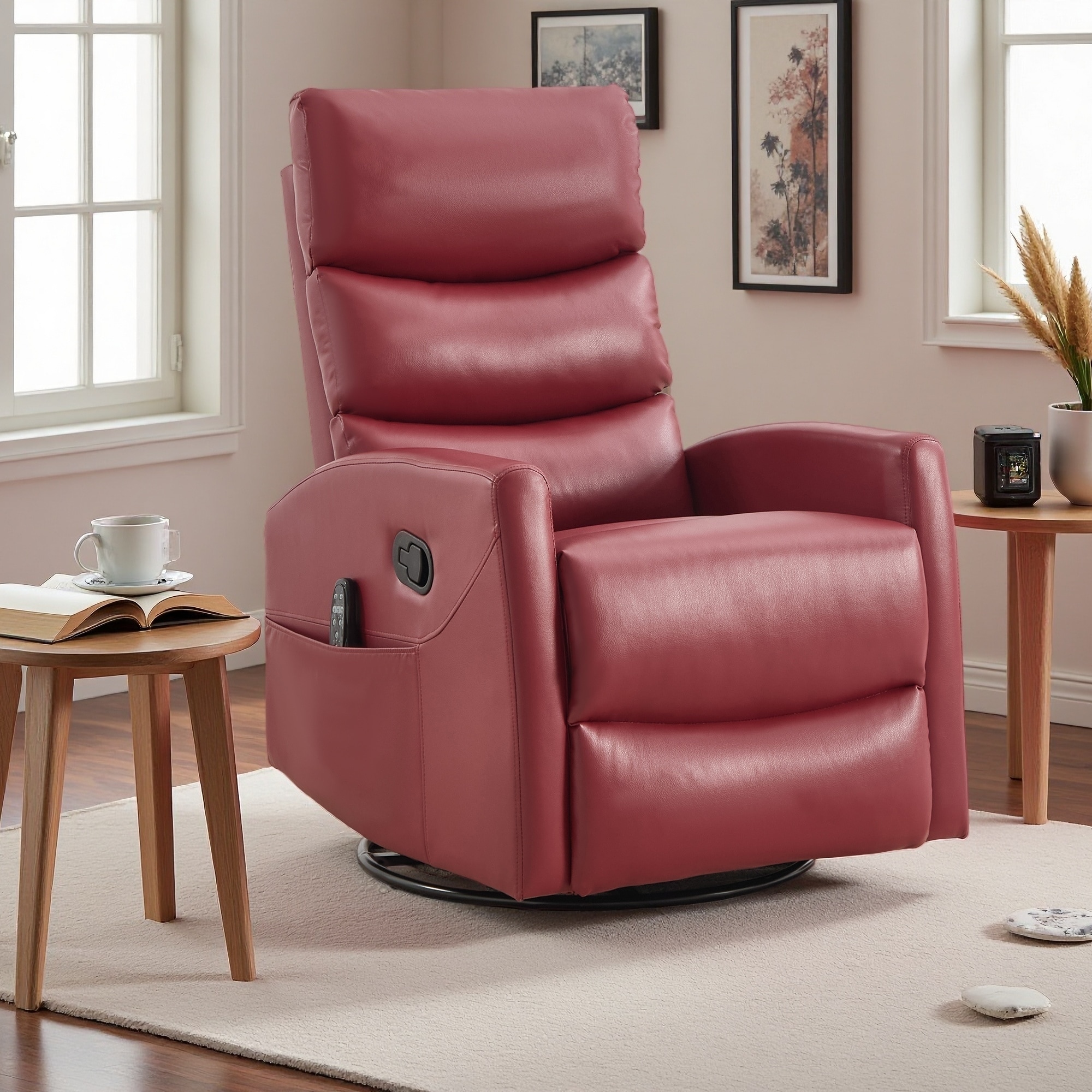 360° Swivel Manual Recliner Chair with Heat & Massage, Swivel Rocker Recliner with Handle Recline, Faux Leather/Linen Upholstery