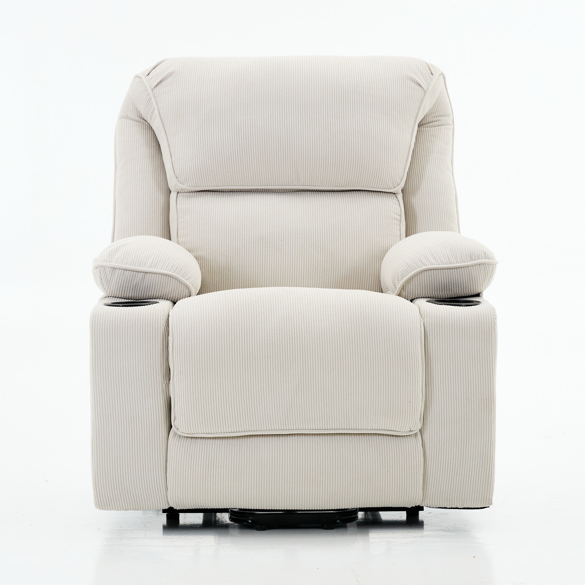 Power Lift Recliner Chair with Extended Footrest, Home Theater Lounge Sofa with Remote Control, Cup Holders & Side Pockets