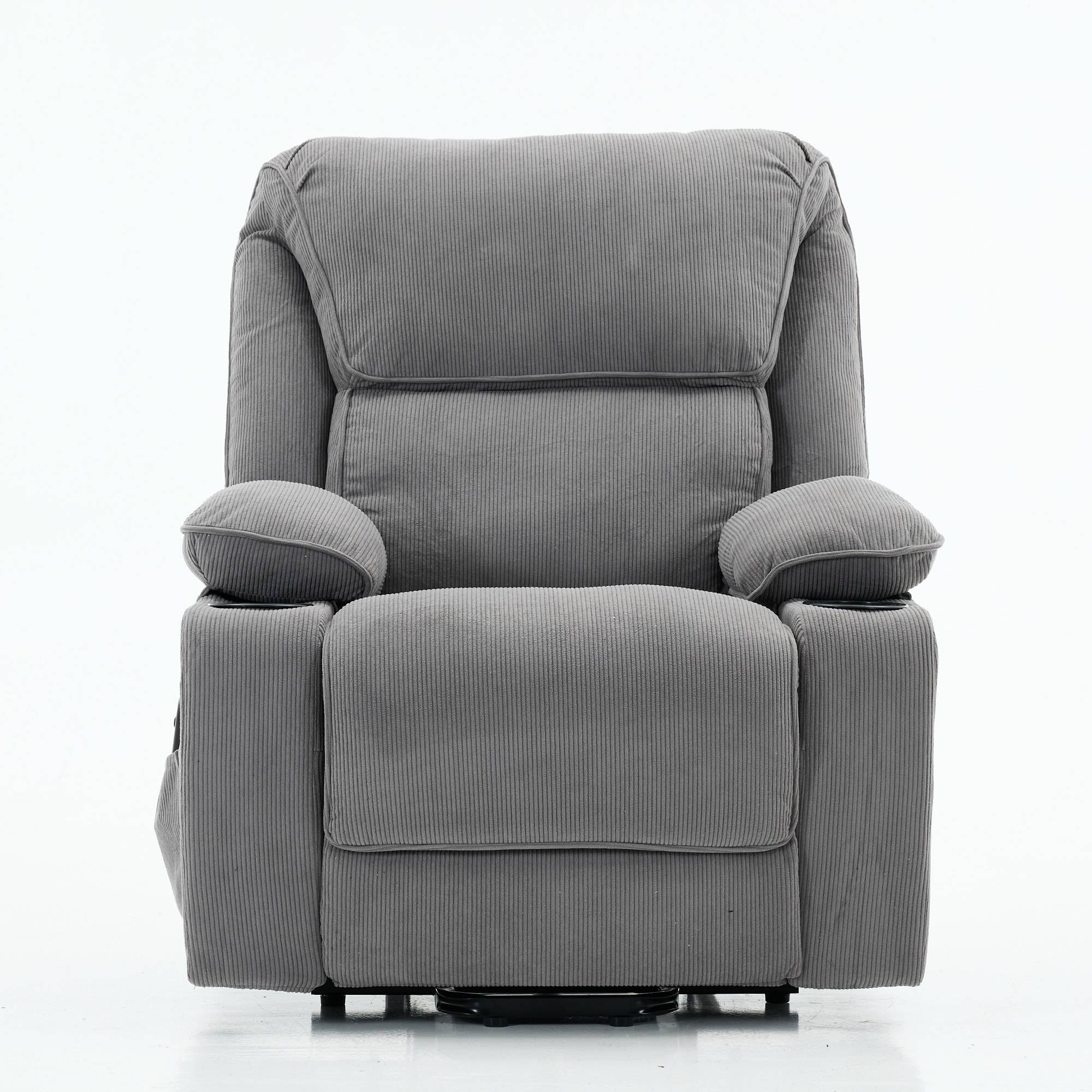 Chenille Power Lift Recliner Chair with Heat & Massage, Adjustable Reclining Sofa with USB Charge Port & Cup Holders