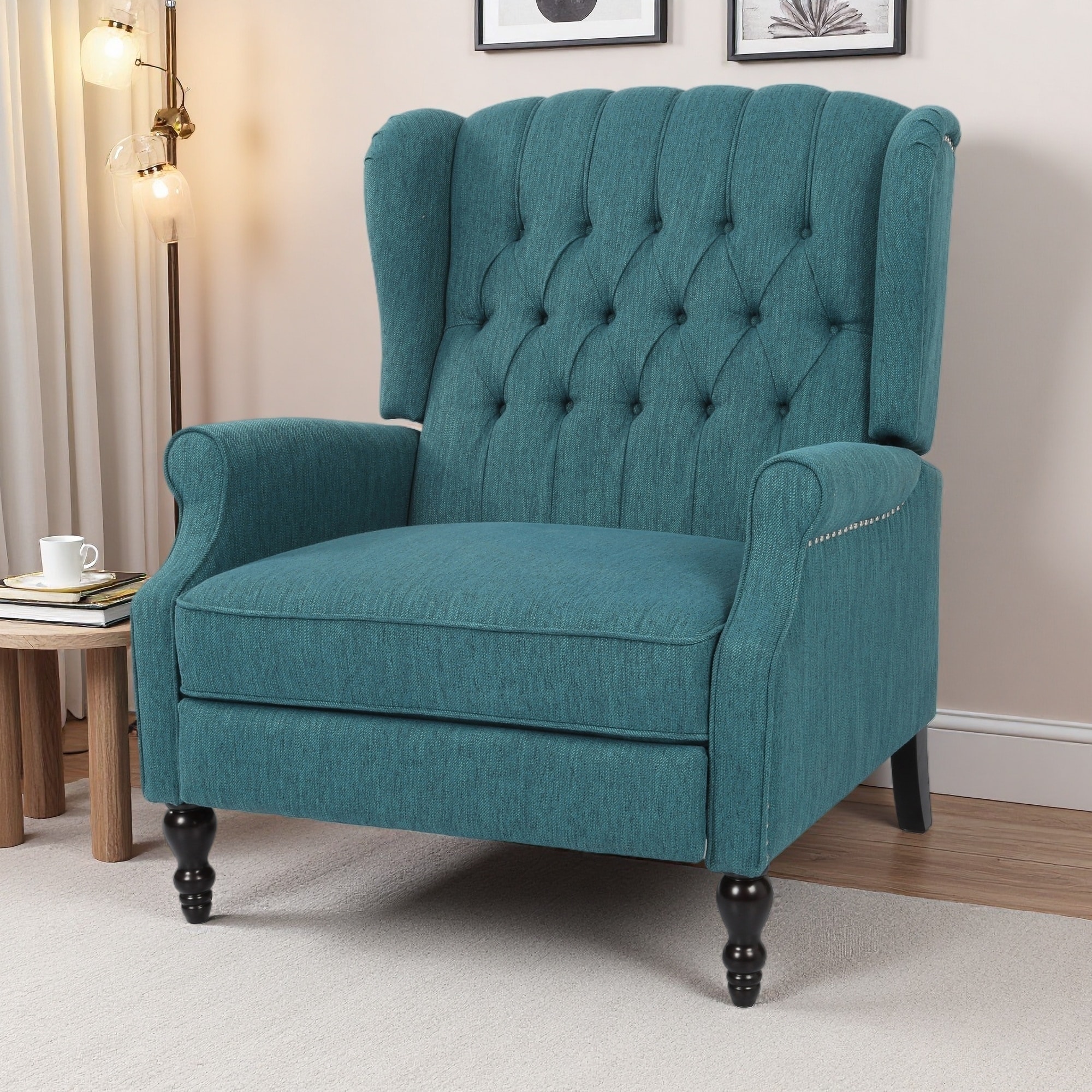 Oversized Fabric Wingback Push-Back Recliner Chair with Nailhead Trim