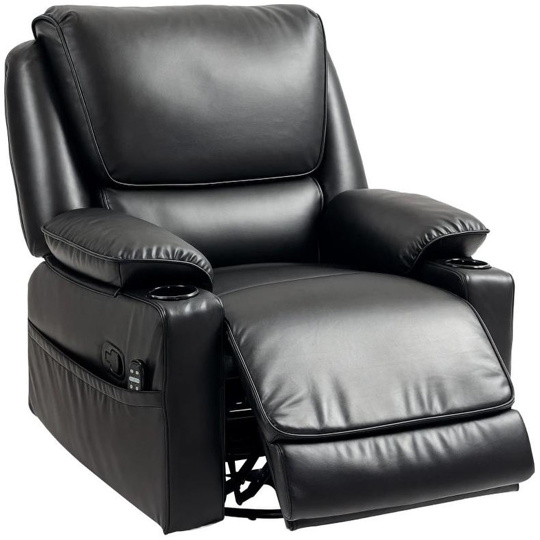 Recliner Chair with Rocking Function, PU Swivel Lounge Chair, Massage Chair with Cup Holders & Side Pockets