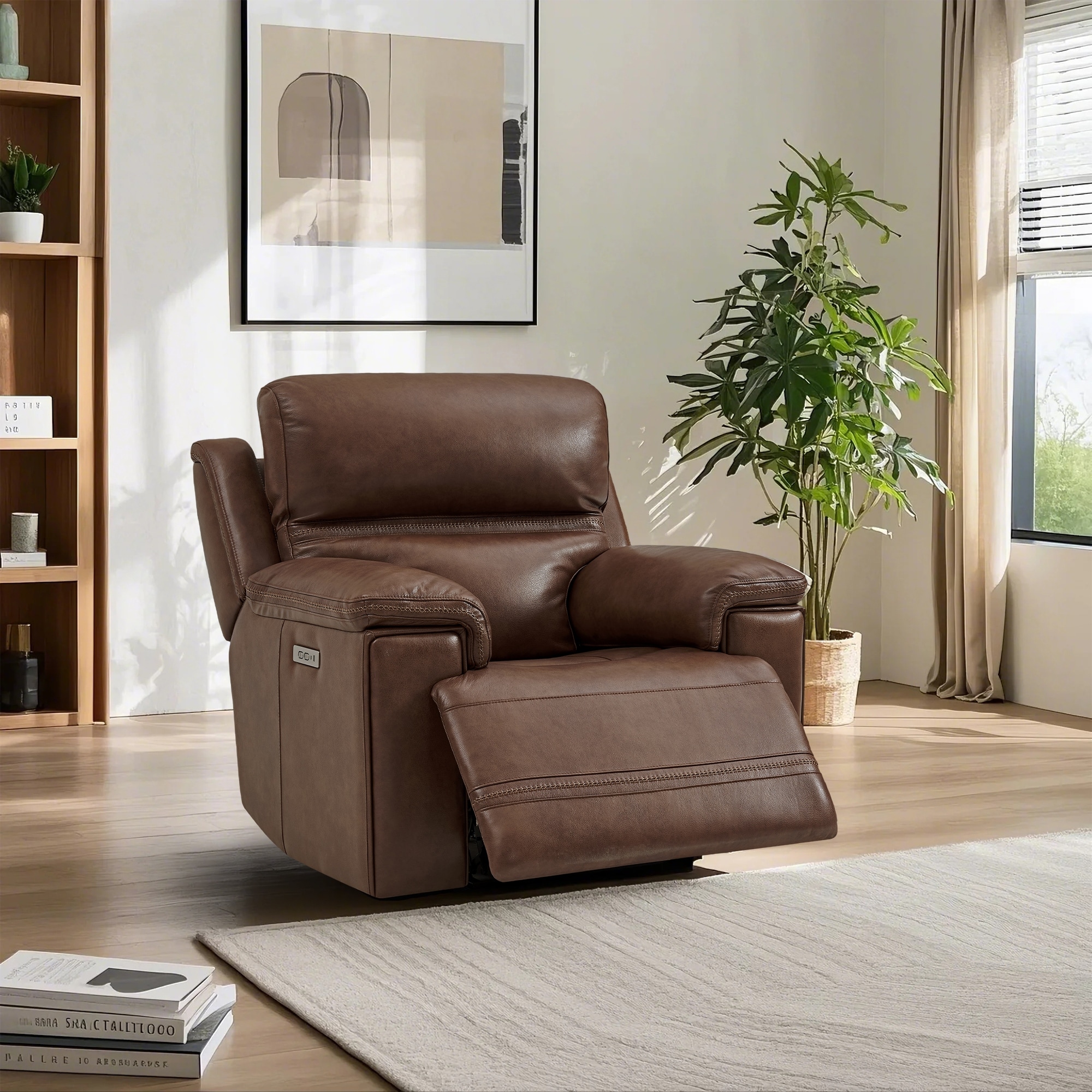 Genuine Leather Power Recliner with Zero Gravity Dual Power Adjustable Headrest & Footrest USB Type-C Charging Ports