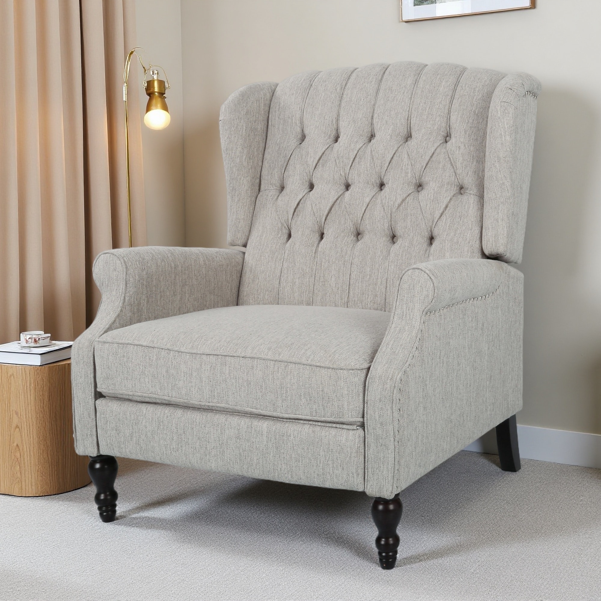 Oversized Fabric Wingback Push-Back Recliner Chair with Nailhead Trim