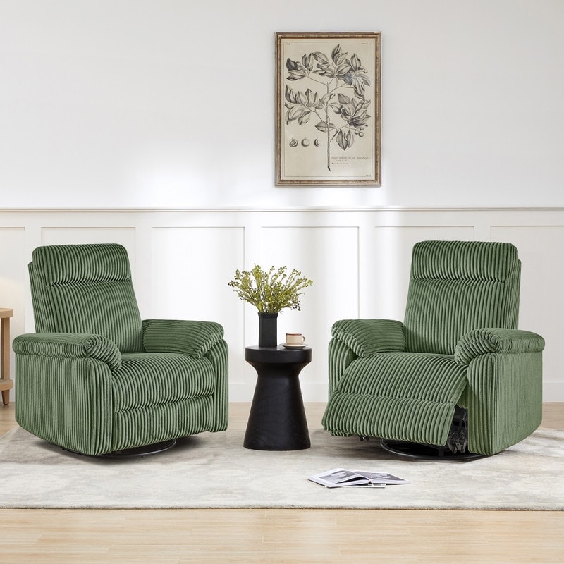 360 Degree Swivel Sofa Chair, Glider Recliner Chair with Wood Swivel Base, Manual Reclining