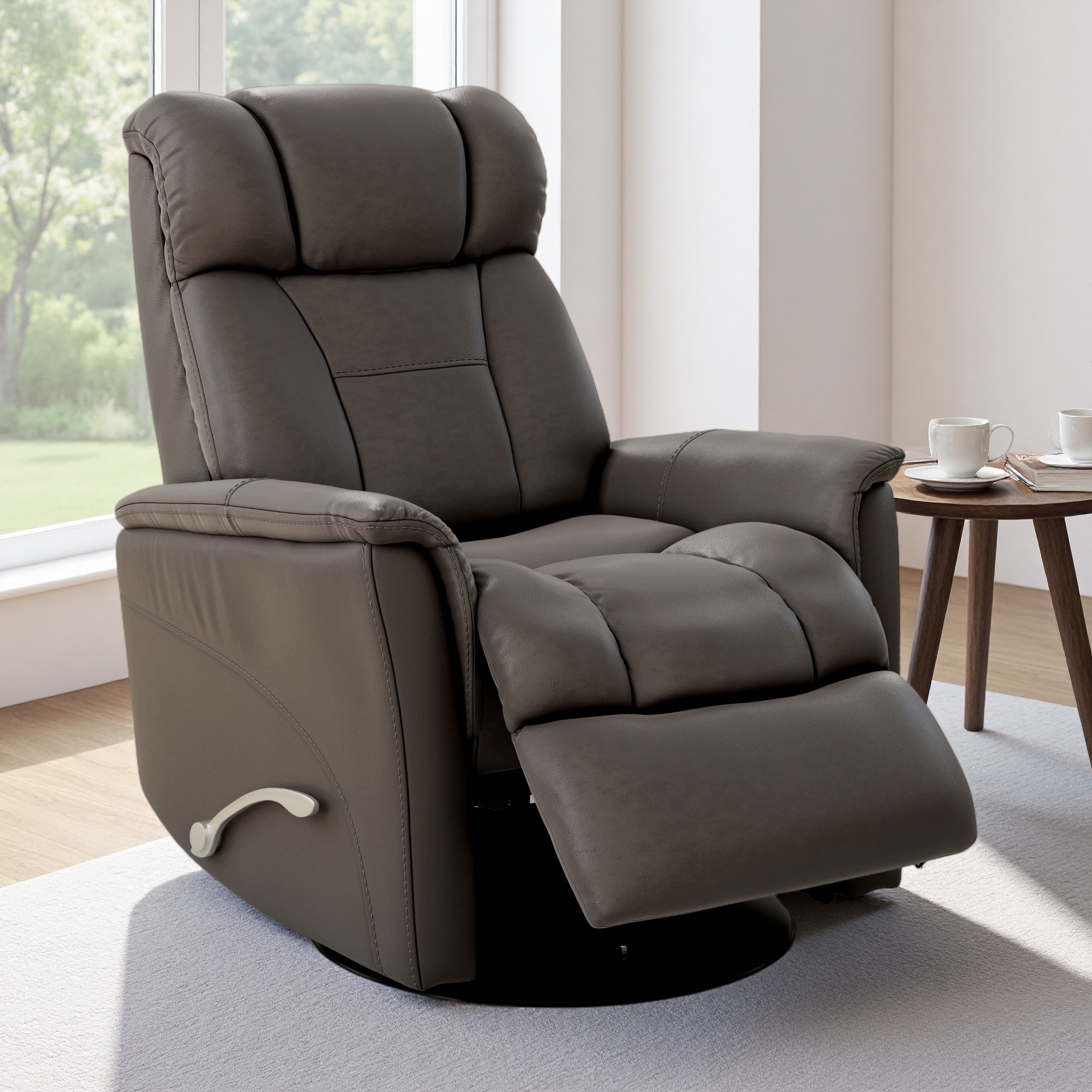 Faux Leather Swivel Glider Recliner Chair with Adjustable Headrest & Footrest