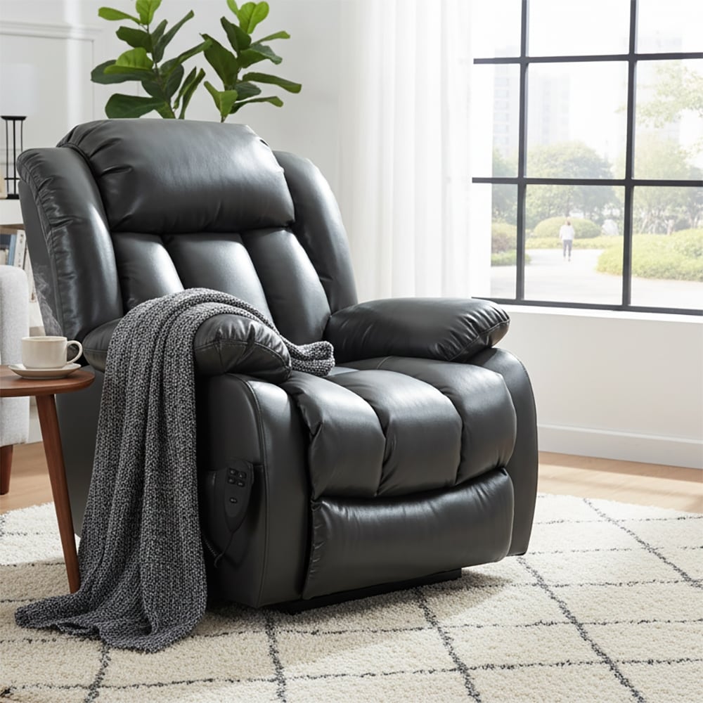 Power Leather Upholstered Recliner Chair with Lift Base and Massage Heating Function