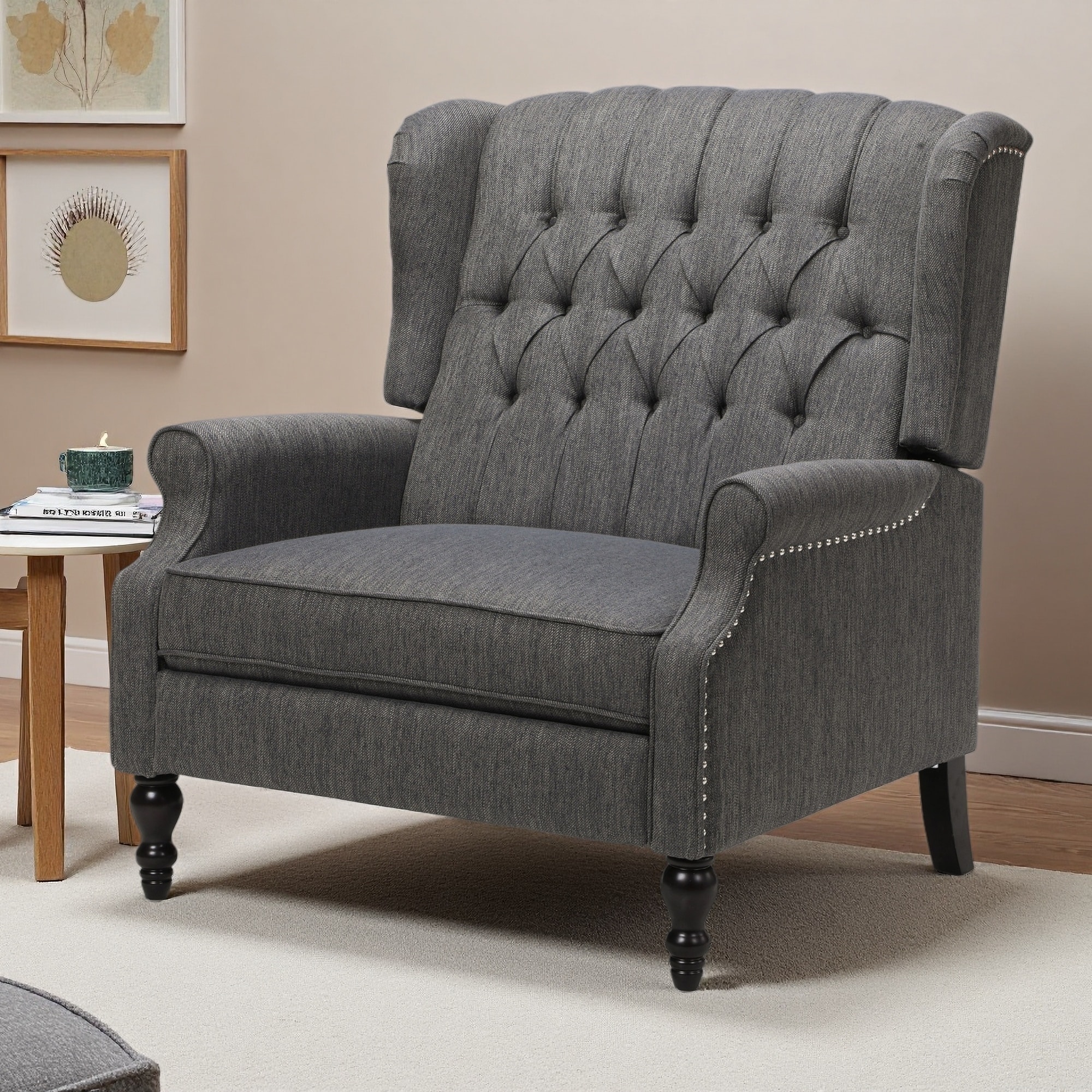 Oversized Fabric Wingback Push-Back Recliner Chair with Nailhead Trim